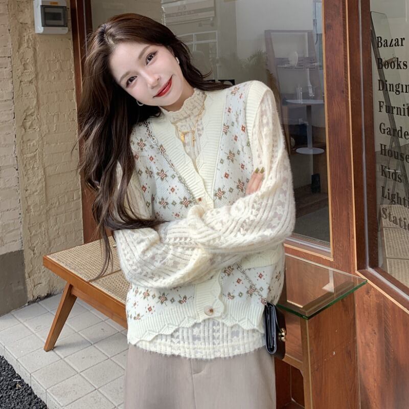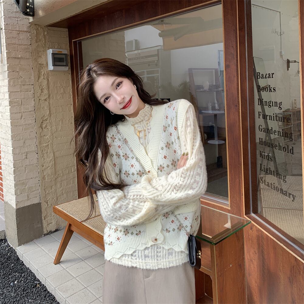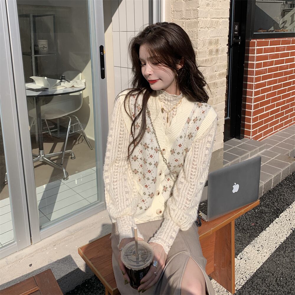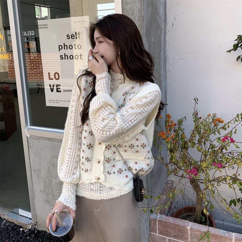 色:ベージュのベスト,アプリコットレースボトムシャツ