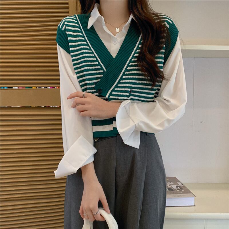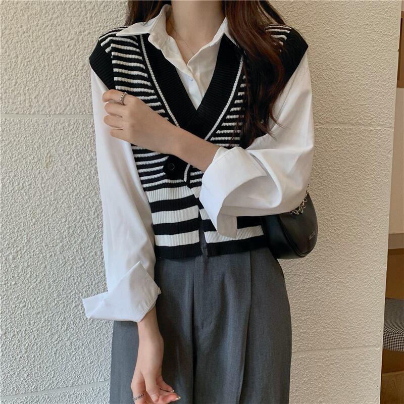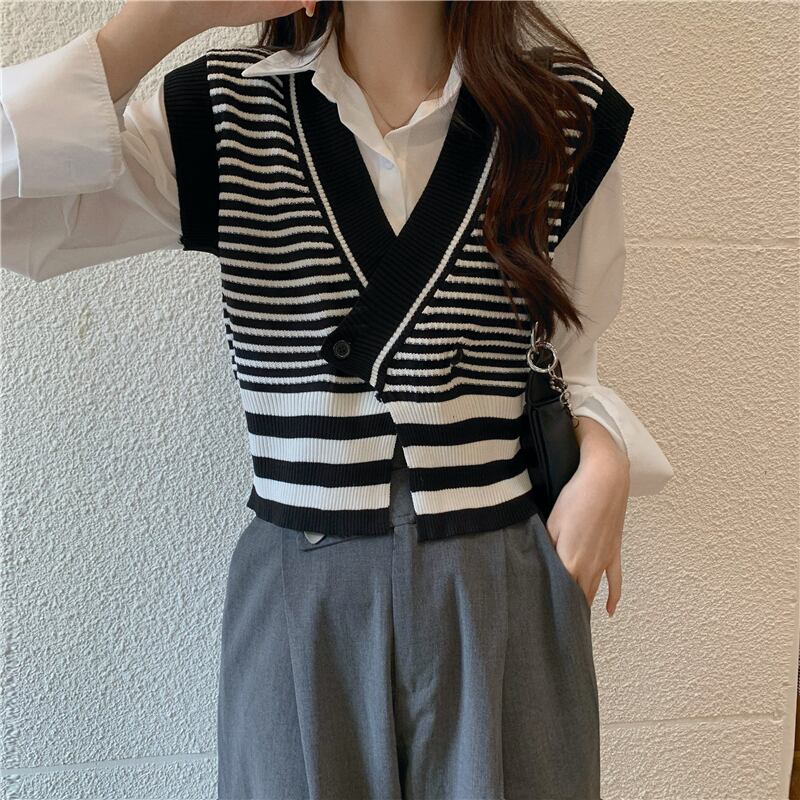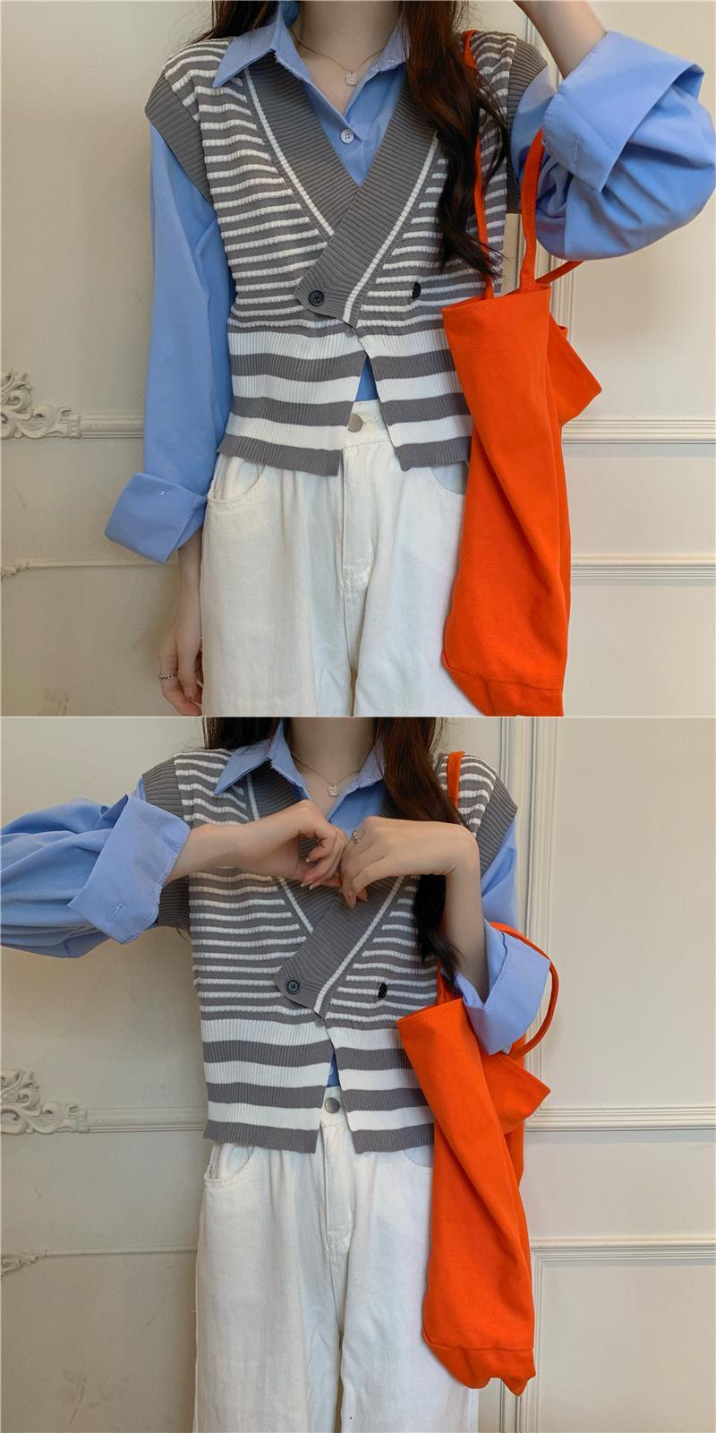 ストライプニットスプリングオータムセーター ショート 春物 秋物 1号婦人5511528085