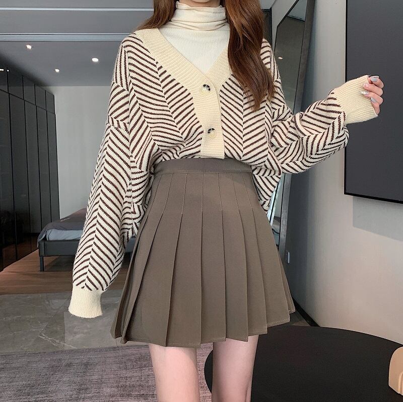 スカート オータムハイウェストウェストAラインプリーツショートスプリング 大人ガーリー スウィート キュート カジュアル 春物 秋物 1号婦人33583795094