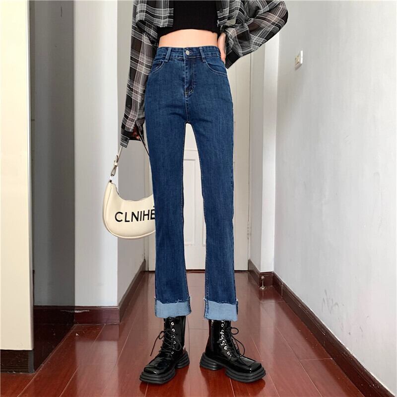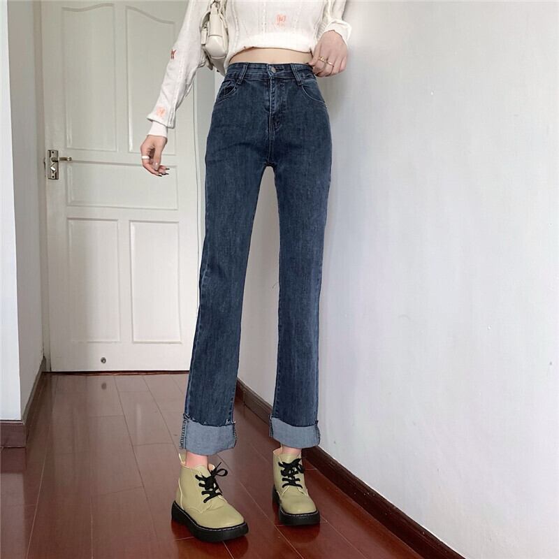 ハイウェストウェストブルージーンズ オータムルーズパンツ 秋物 1号婦人25935447611