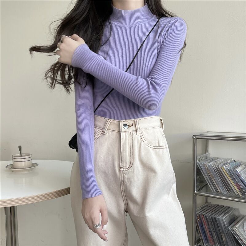 カラーソリッド セーター スプリングオータムシャツ トップス ロング 春物 秋物 ソリッドカラー 1号婦人61521613090