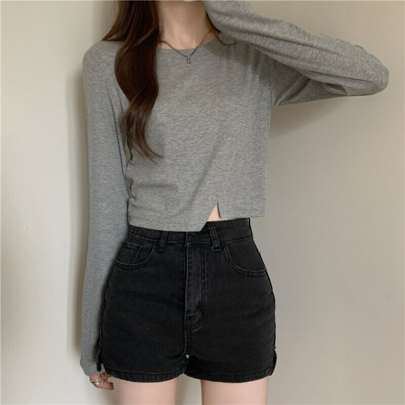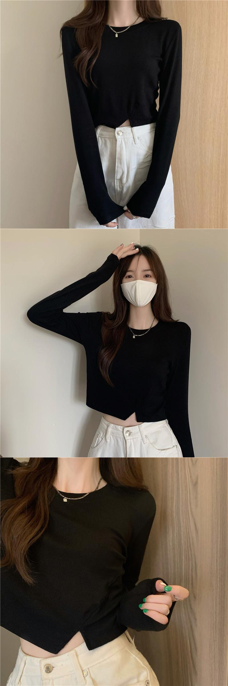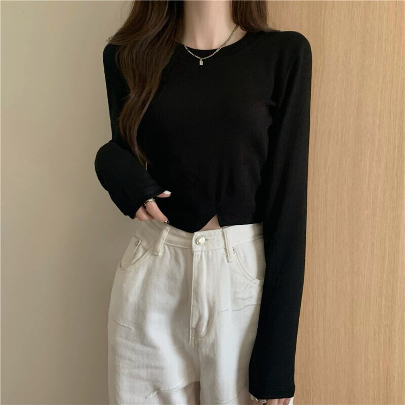クロップドトップス オータムスタイルシャツ ホワイトTシャツ ロング 秋物 1号婦人48166378863
