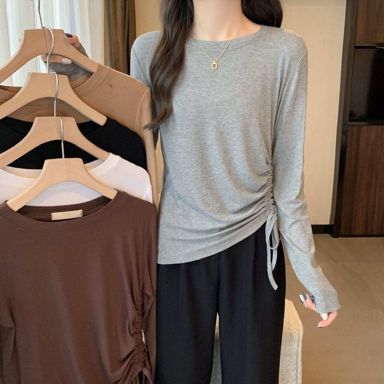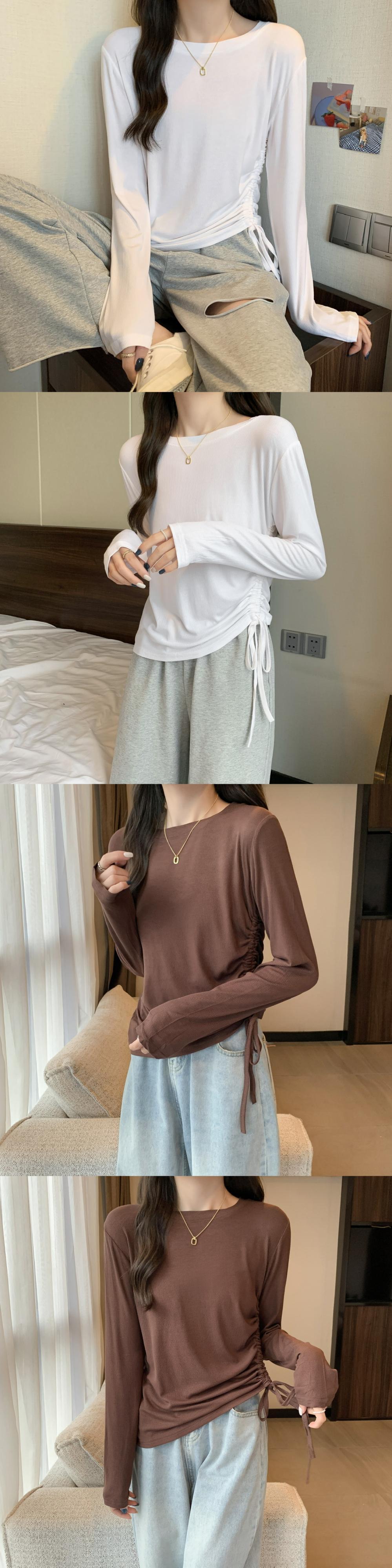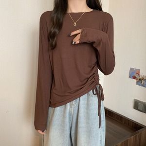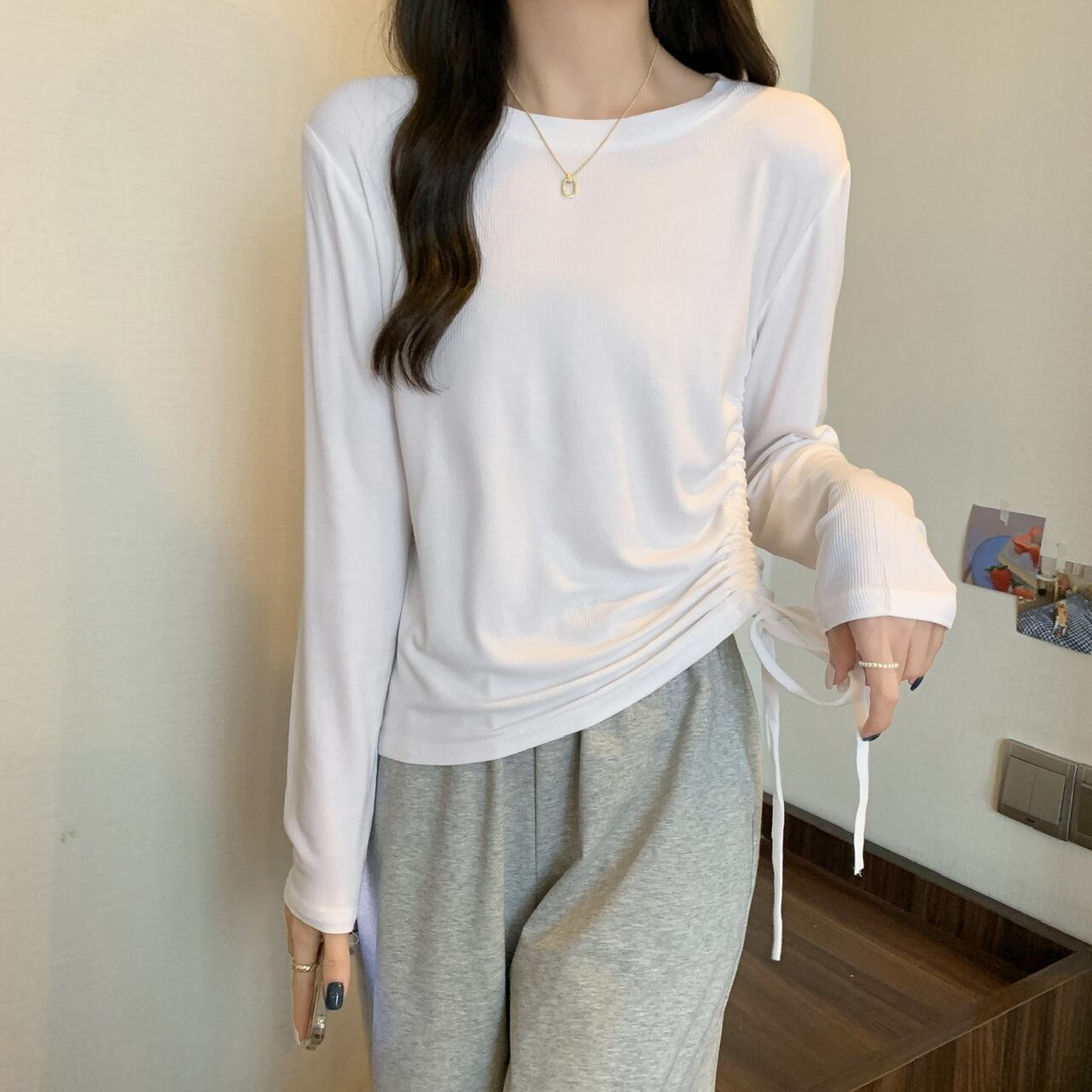 ホワイトTシャツ シャツ オータムトップス ギャザールーズ ロング 秋物 1号婦人1496489925
