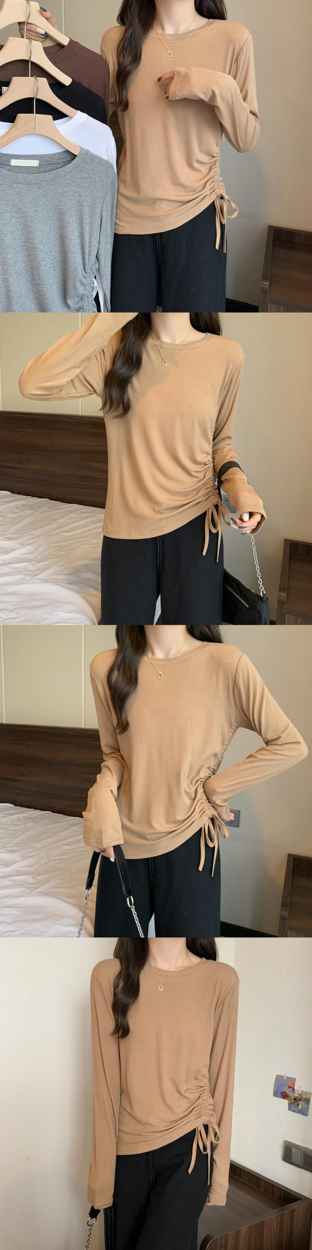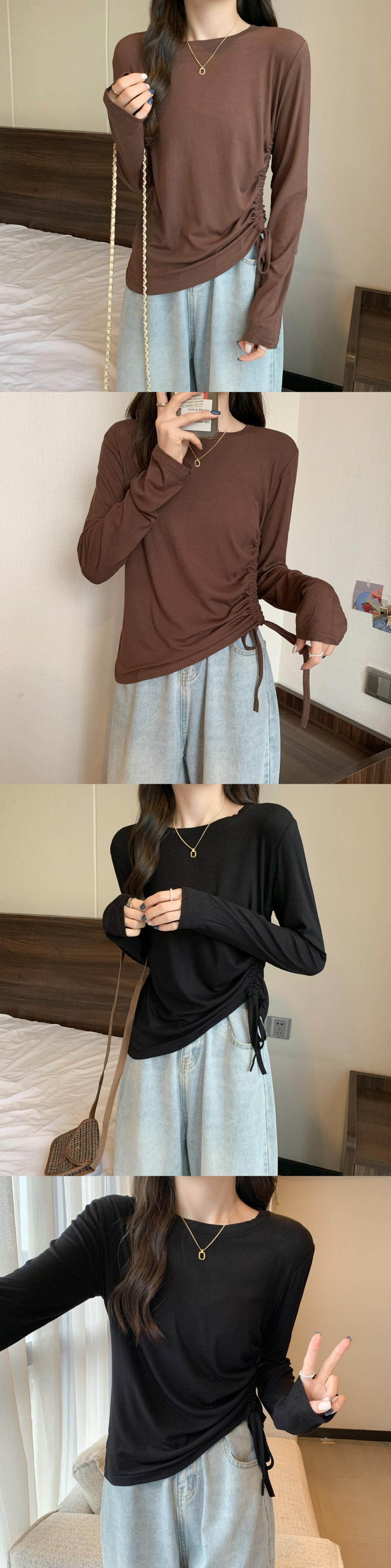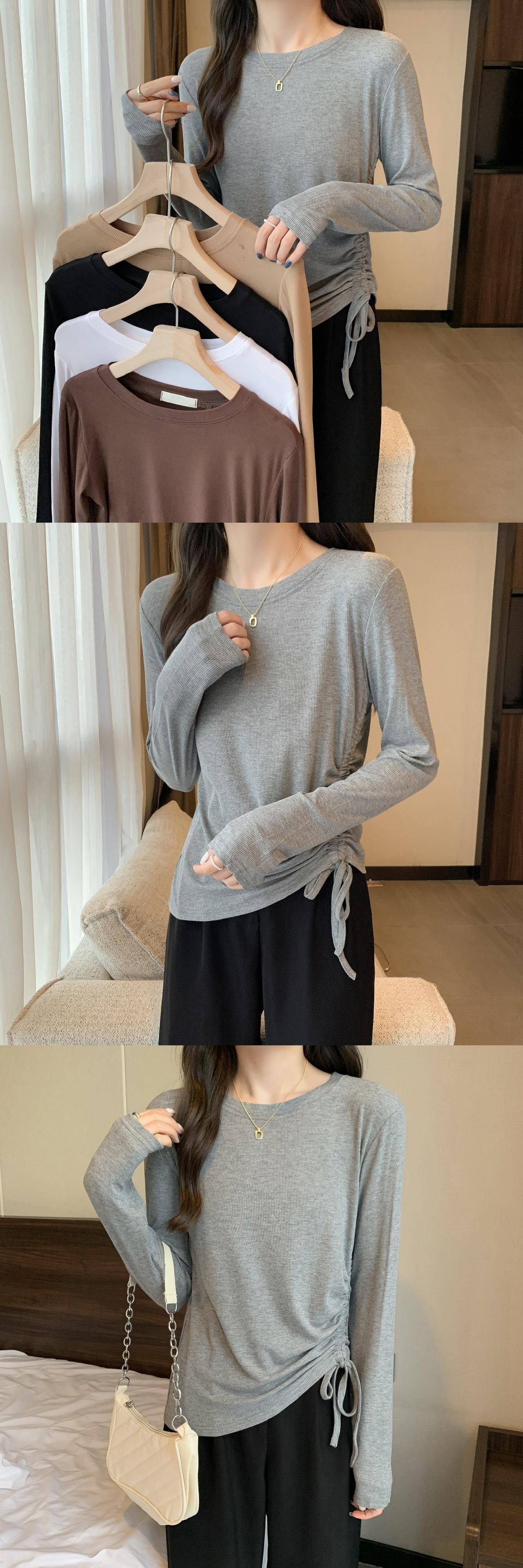 ホワイトTシャツ シャツ オータムトップス ギャザールーズ ロング 秋物 1号婦人1496489925
