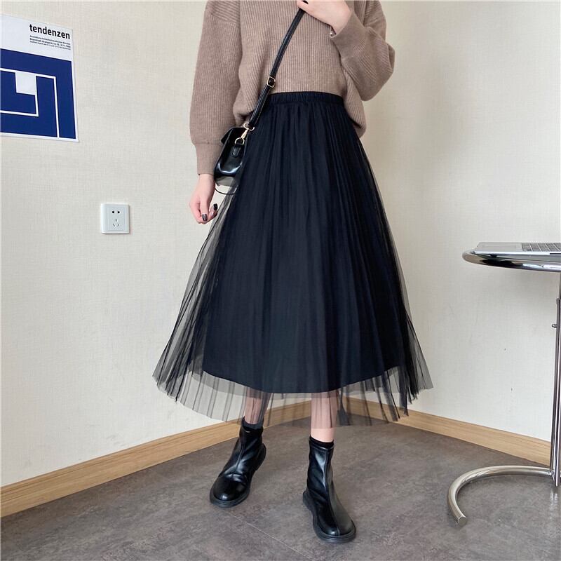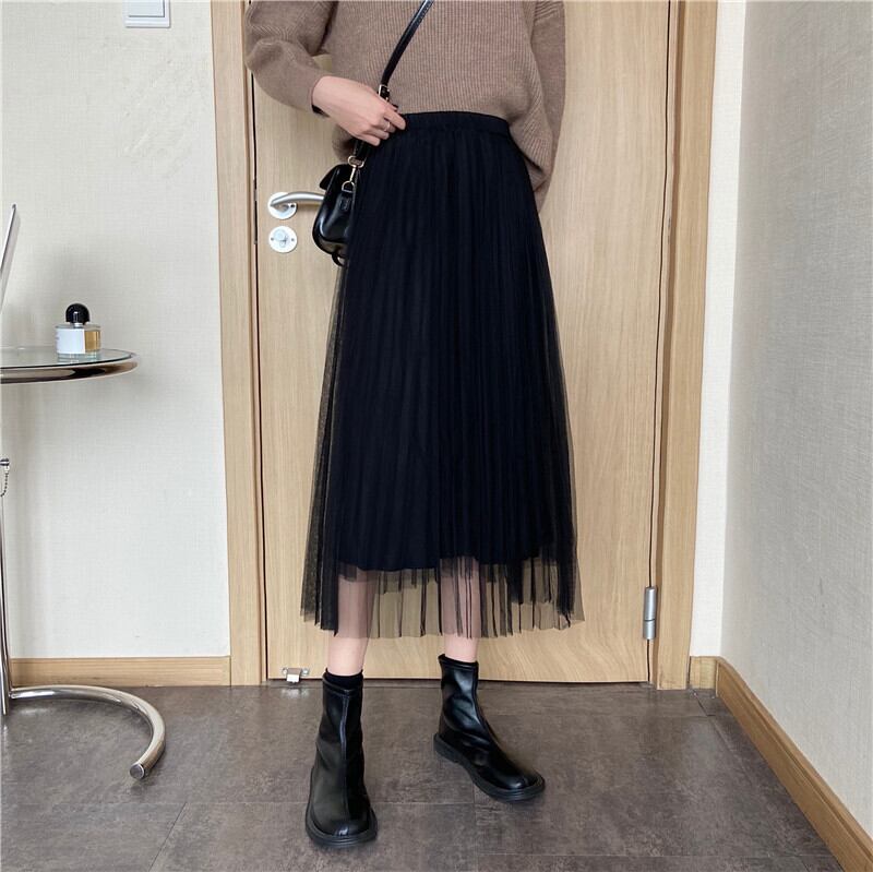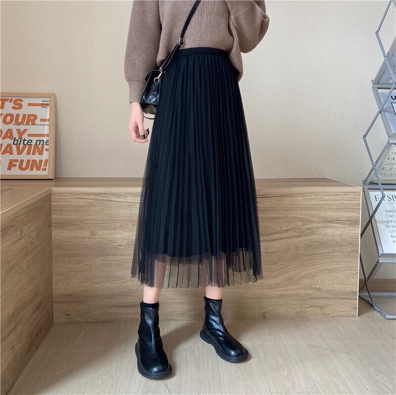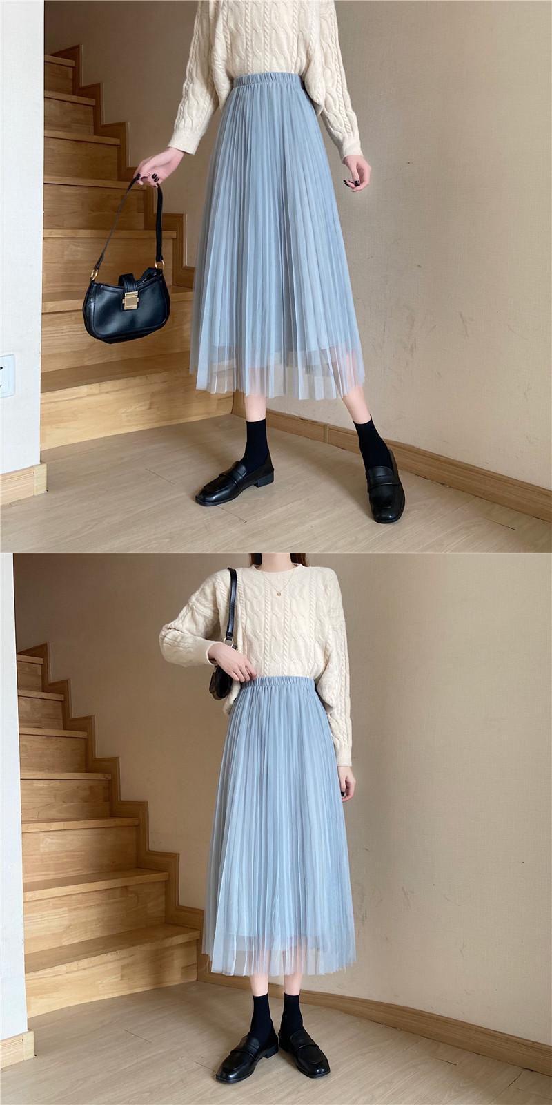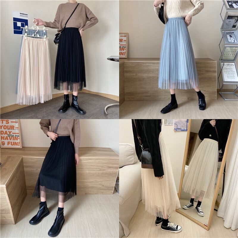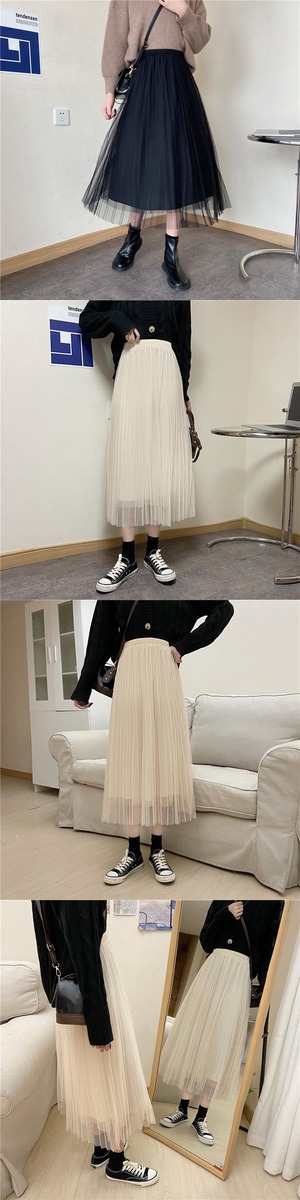 Aラインスカート スプリングオータムハイウェスト薄手プリーツ 春物 秋物 1号婦人86404860649