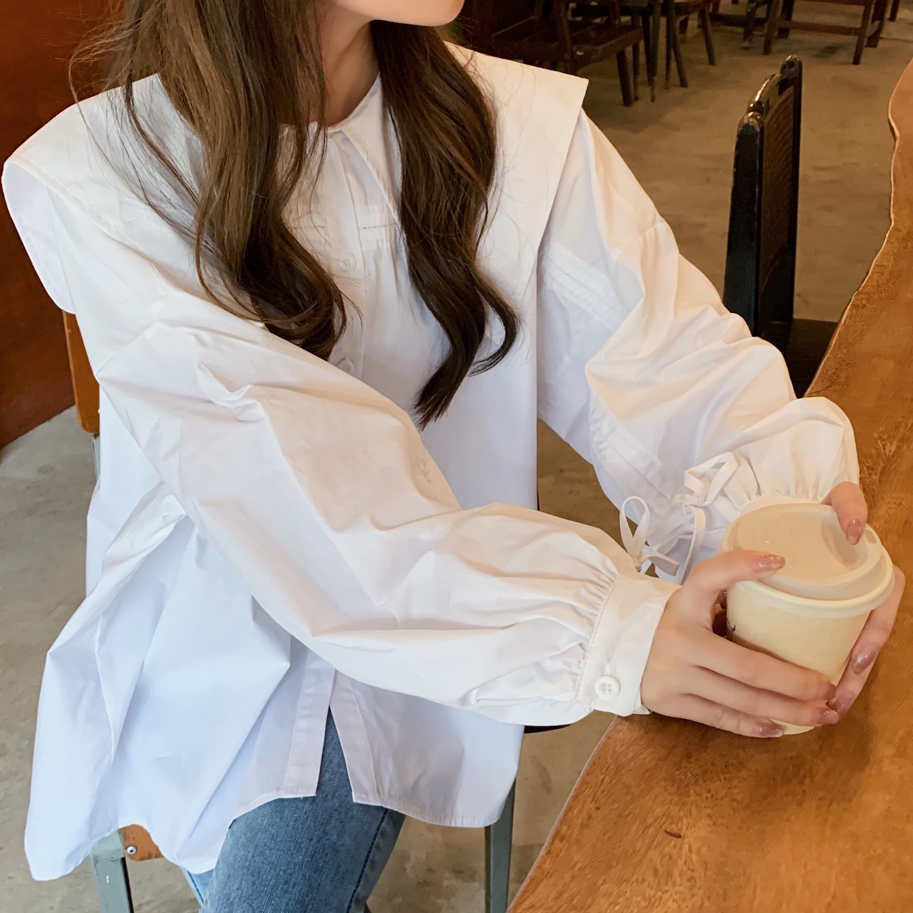 ネイビーカラーシャツ オータムルーズブルートップス 秋物 1号婦人94968919282