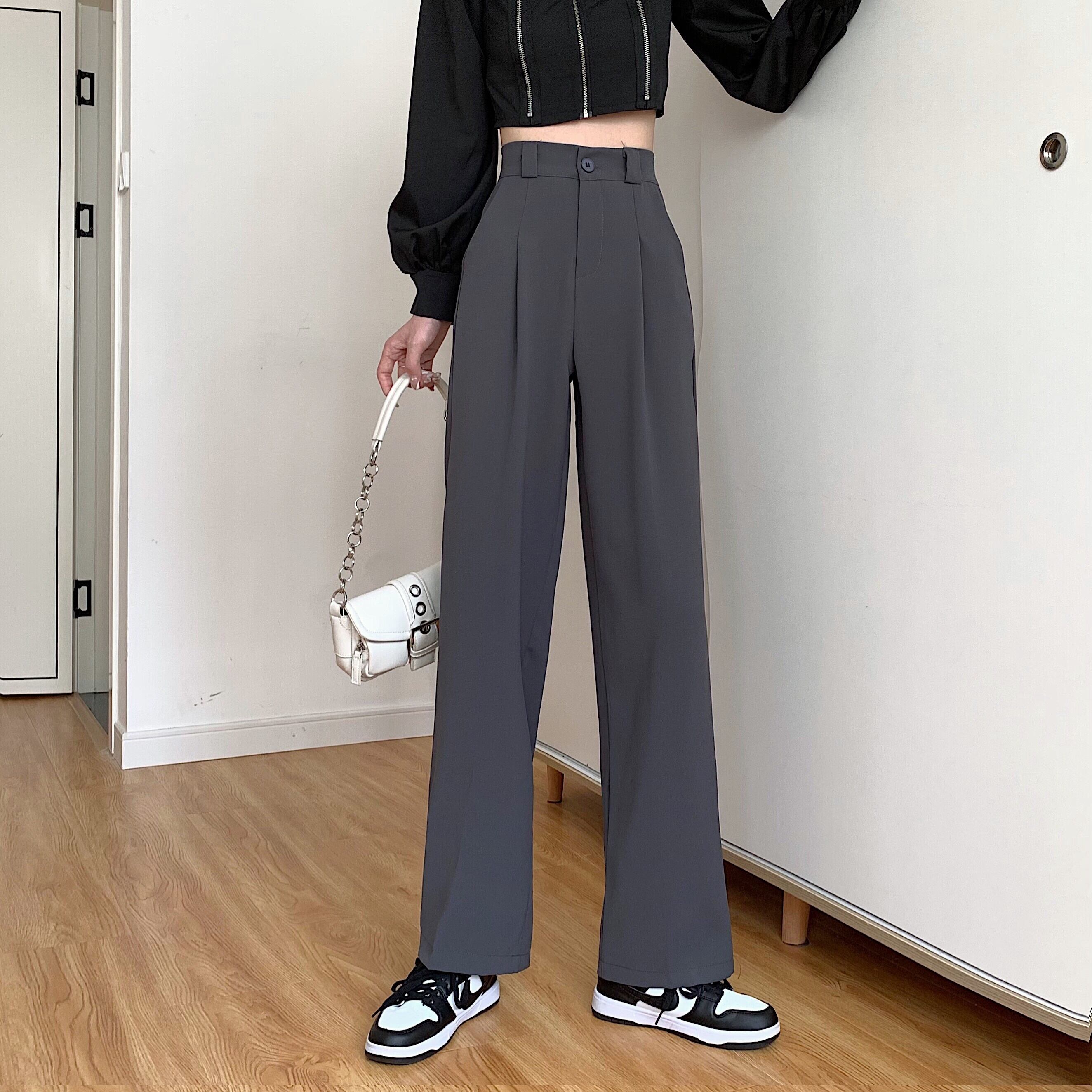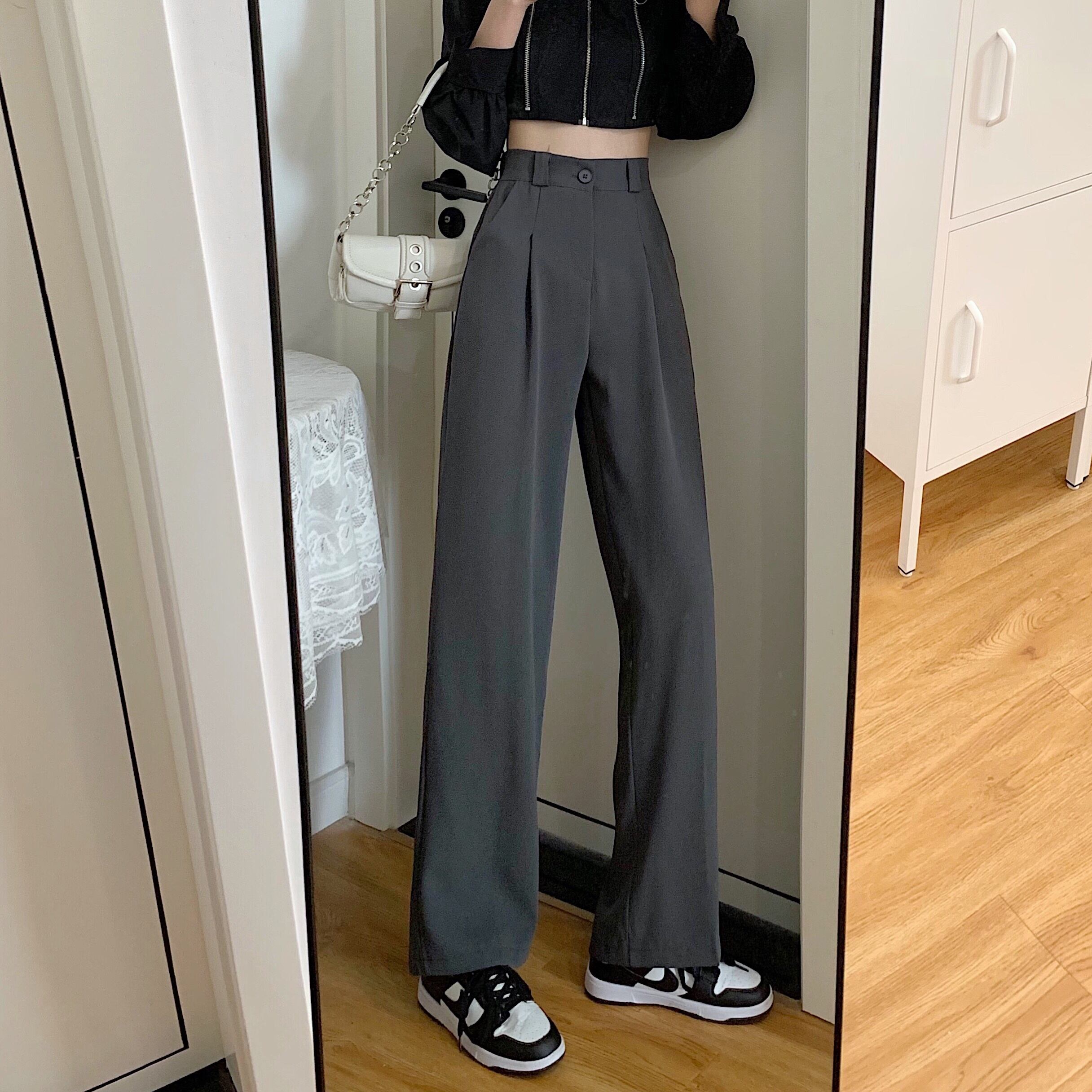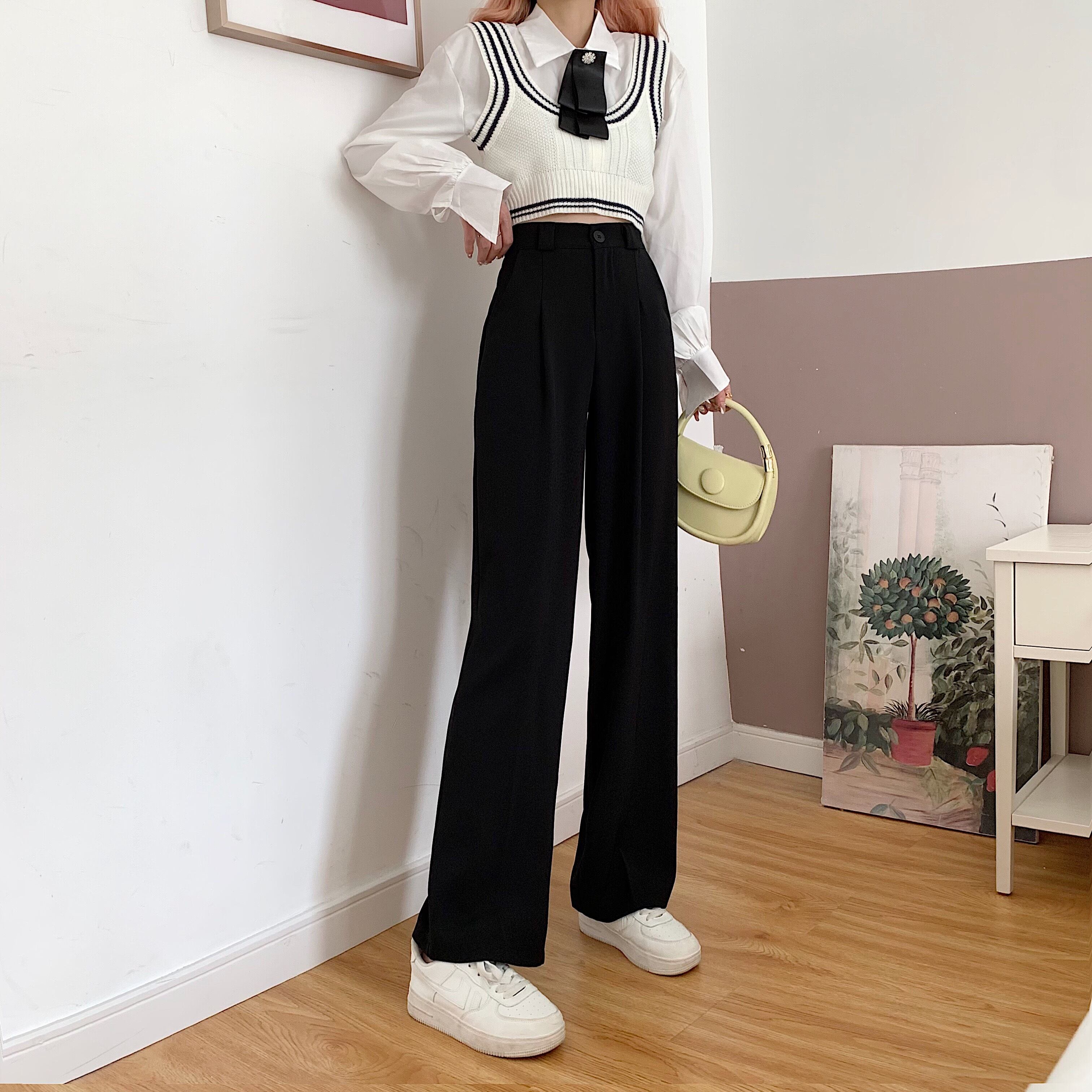 ブラックオータムカジュアルパンツ ハイウェストウェストワイドレッグルーズ 秋物 ワイドパンツ 1号婦人4511359621