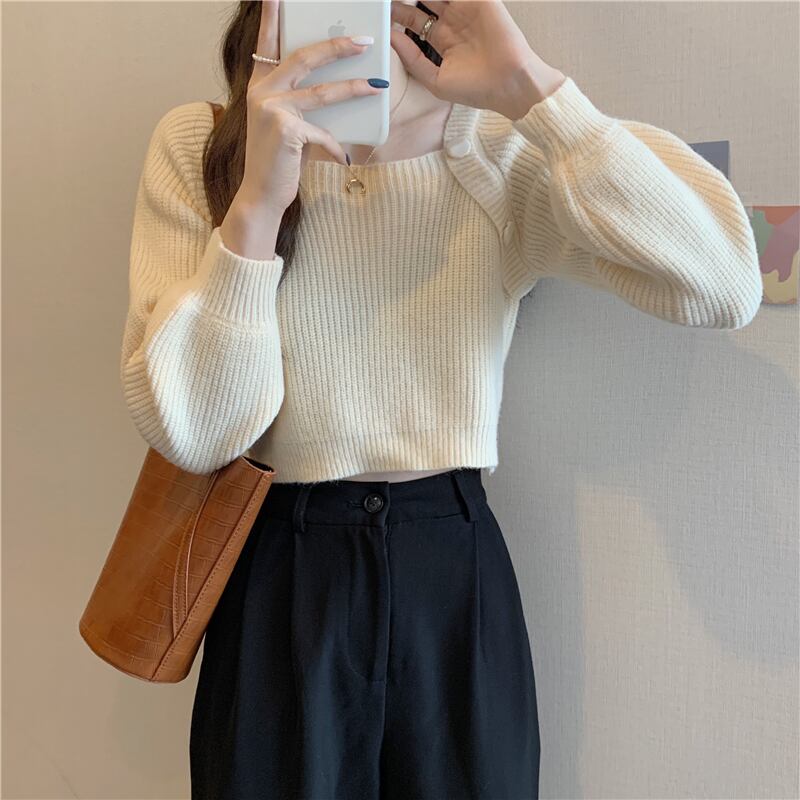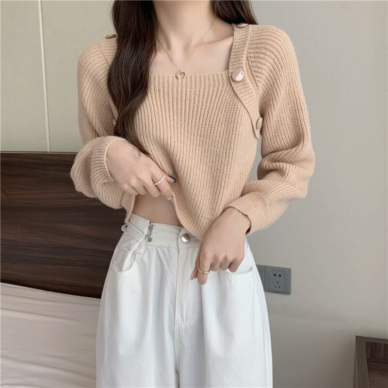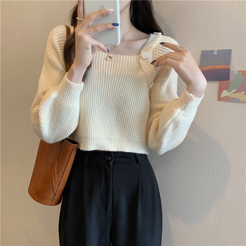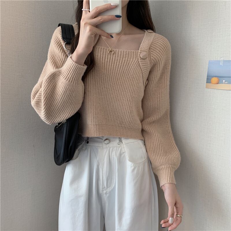 セーター レディースオータムウィンタースタンダードショートスリム ロング レトロ 秋物 冬物 スクウェア 1号婦人64263911412