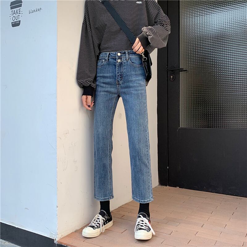 ジーンズ スプリングオータムハイウェストウェストルーズロングパンツ 春物 秋物 1号婦人32477150933
