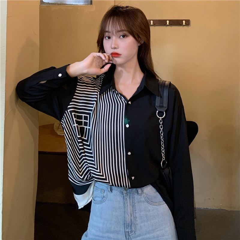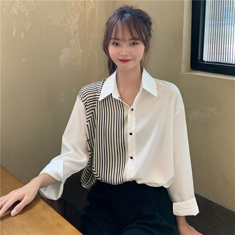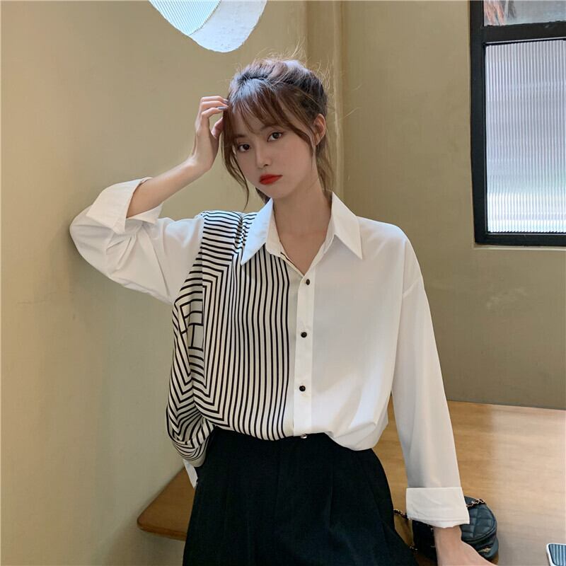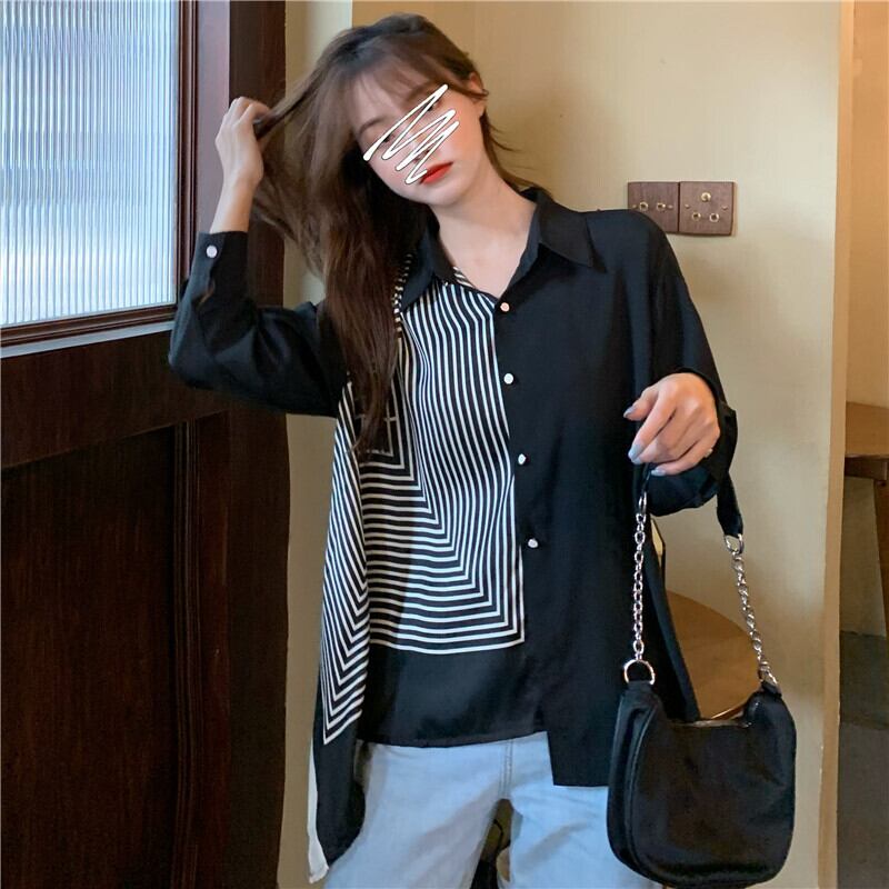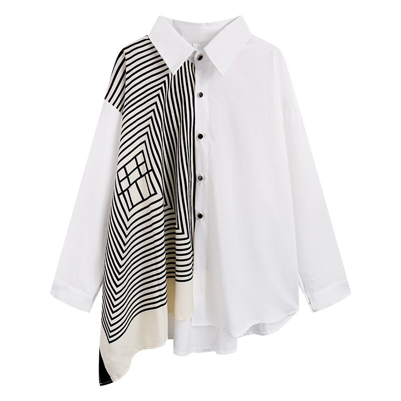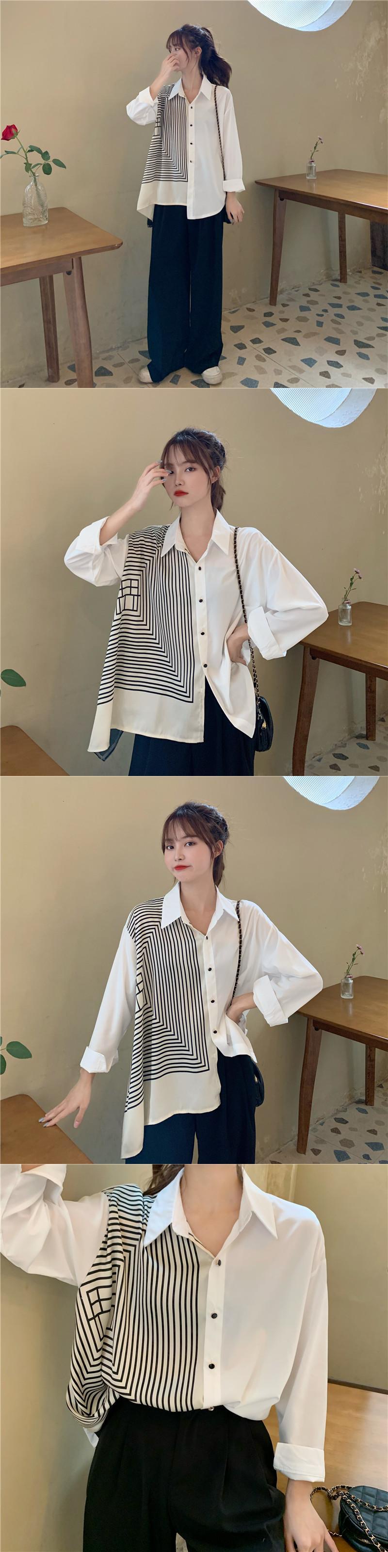 シャツ オータムトップス ストライプ ロング 秋物 1号婦人95194813795