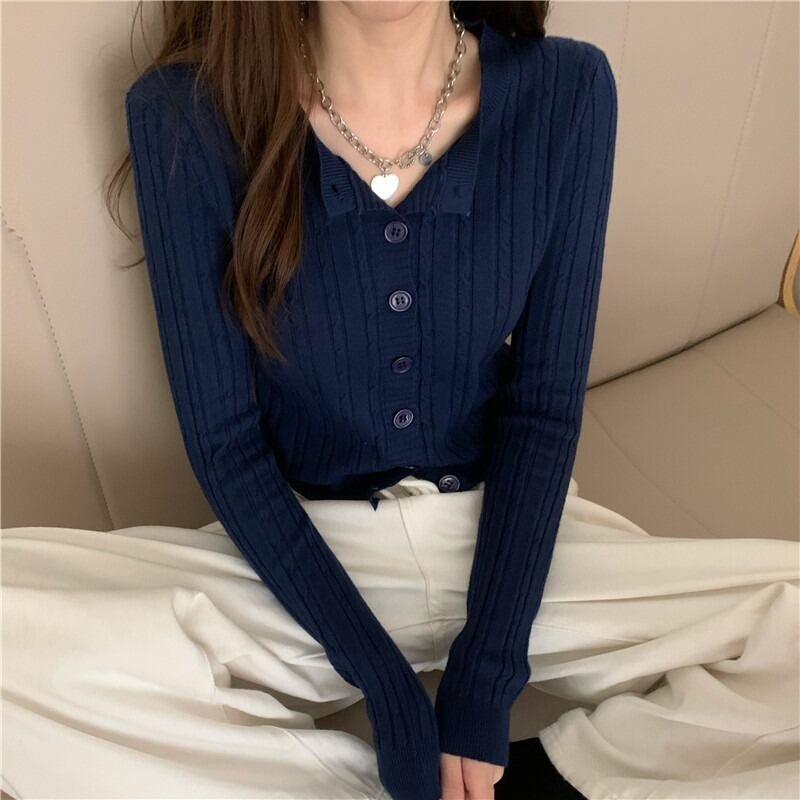 ニットカーディガンスプリングオータムストライプスリムショートジャケット ロング 春物 秋物 1号婦人46309209200