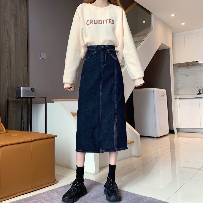 Aラインスカート スプリングオータムスタンダードハイウェスト薄手 レトロ 春物 秋物 1号婦人86452671405