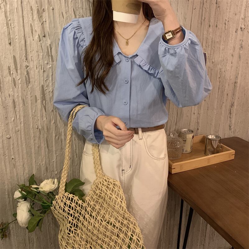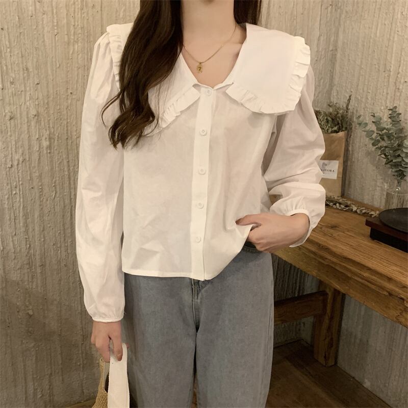 オータムブラウス ホワイトシャツ スタイルカラー ロング 秋物 1号婦人4319135192