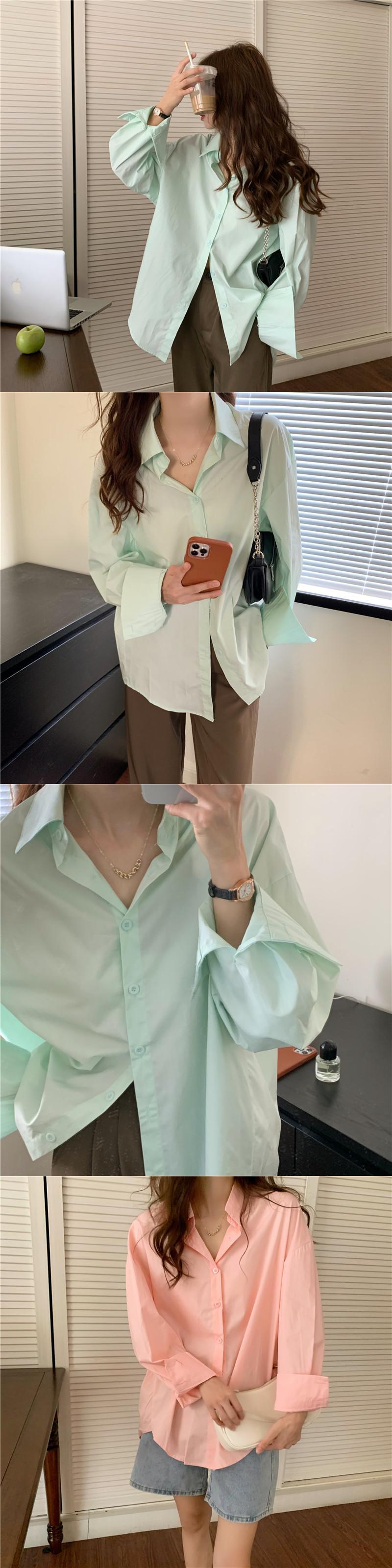 シャツ オータムスタイルルーズ薄手ホワイトブラウス ロング 秋物 1号婦人54137670704