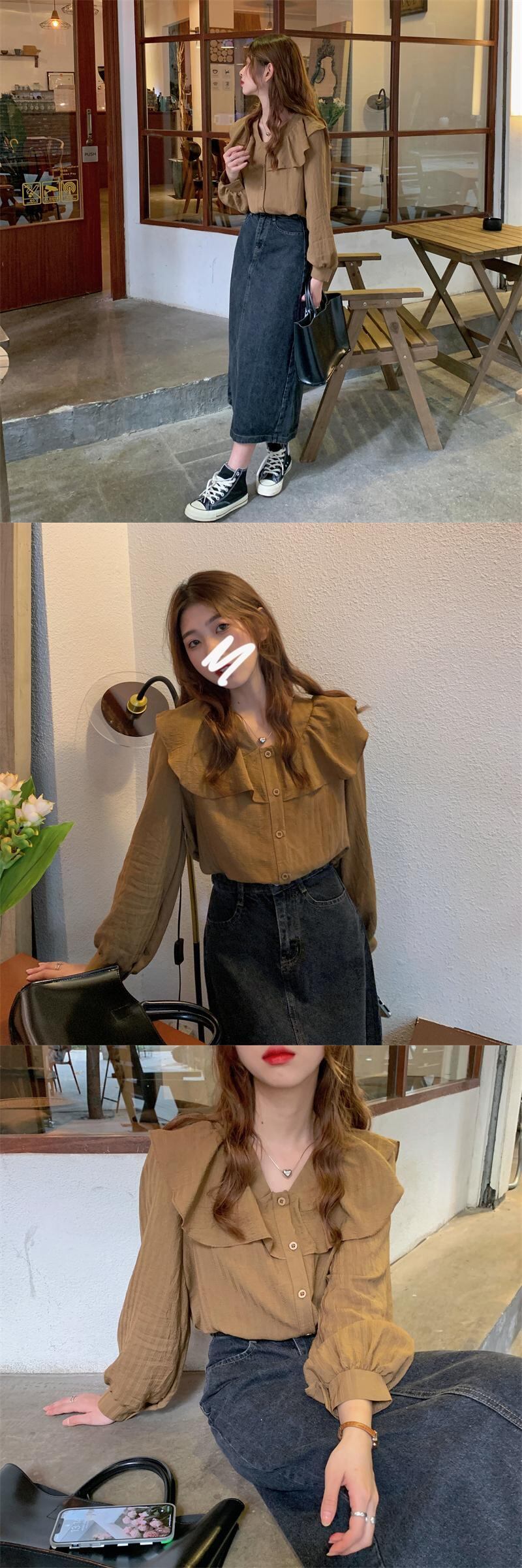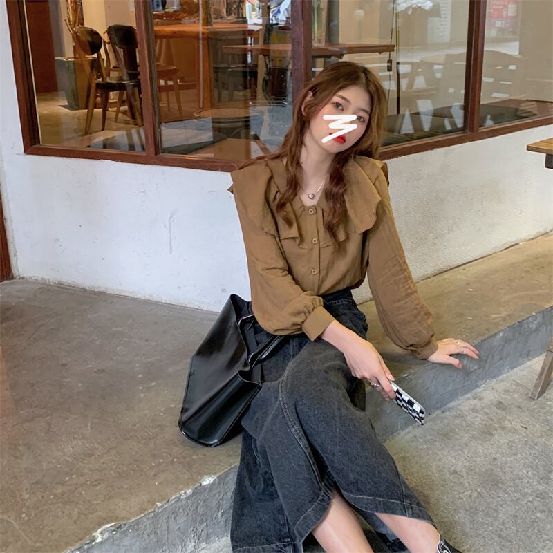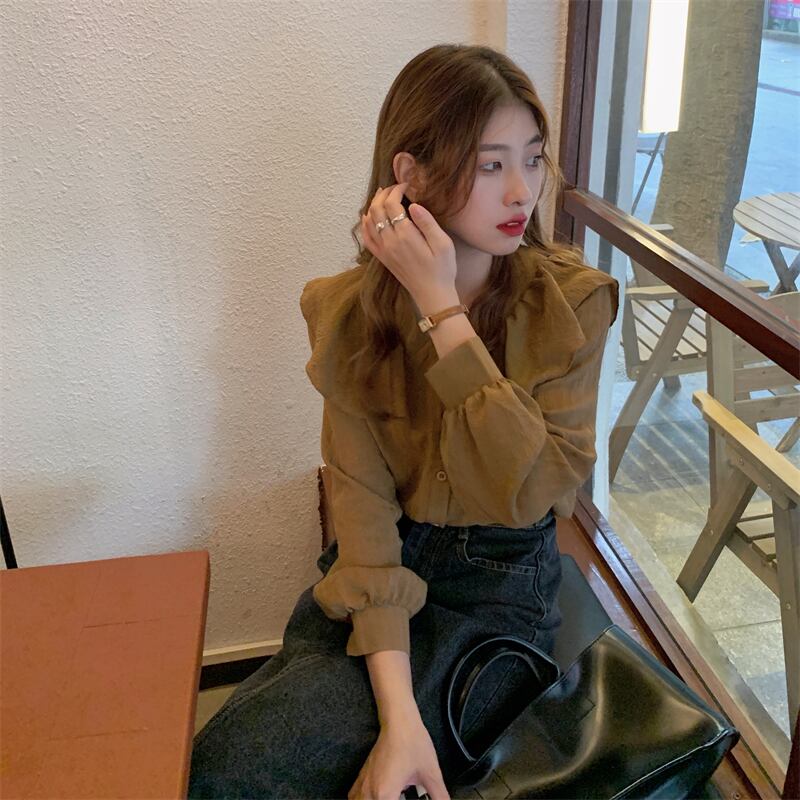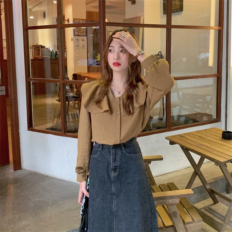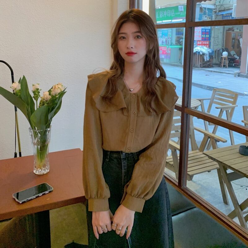 オータムトップス シャツ カラー ロング 大人ガーリー スウィート キュート カジュアル 秋物 1号婦人37926825643