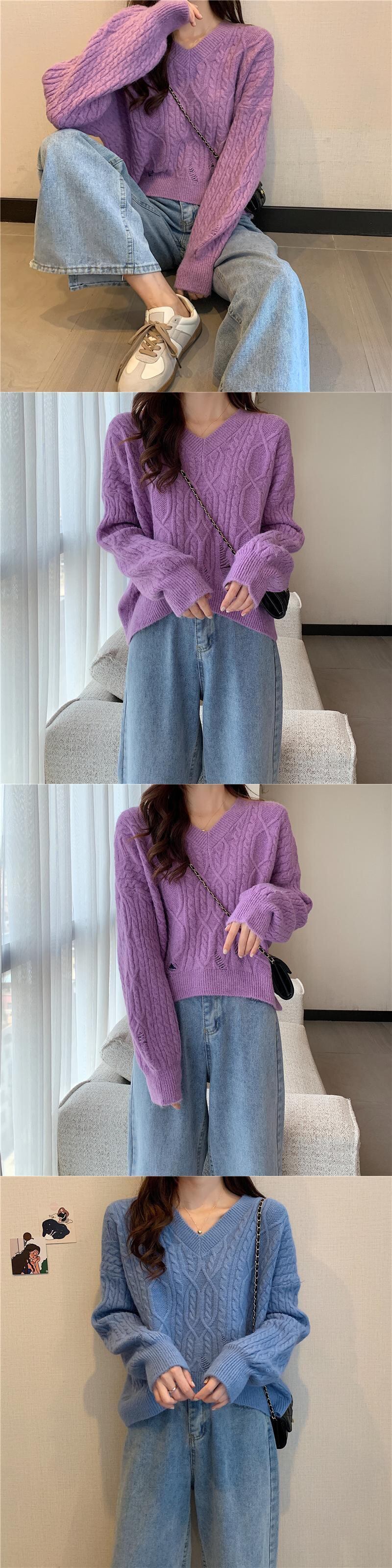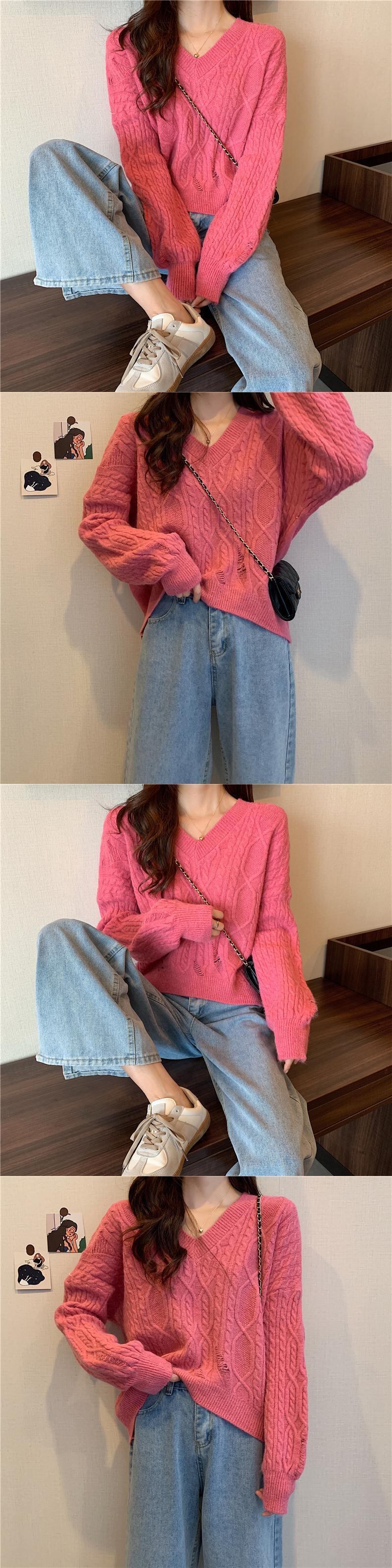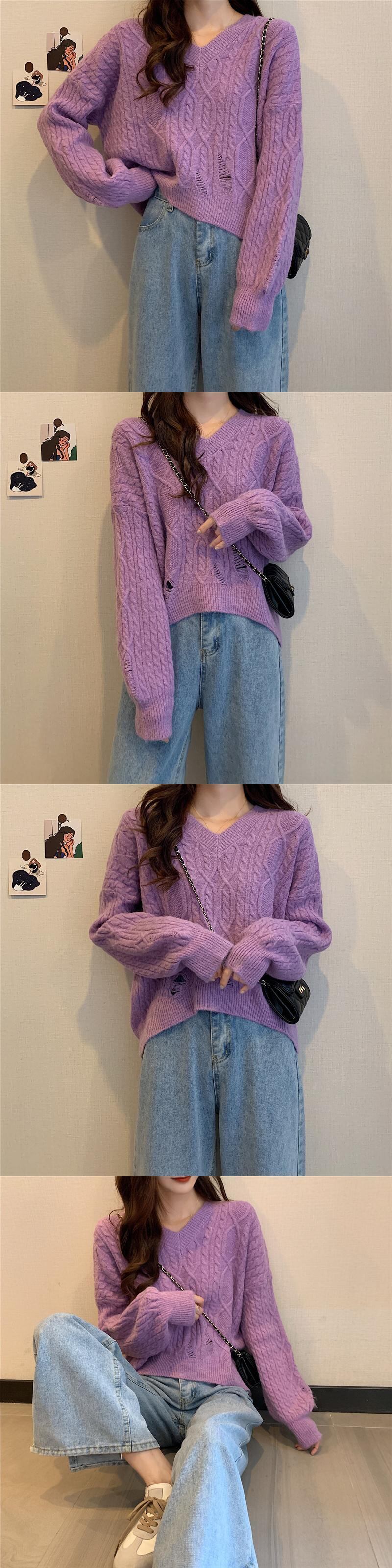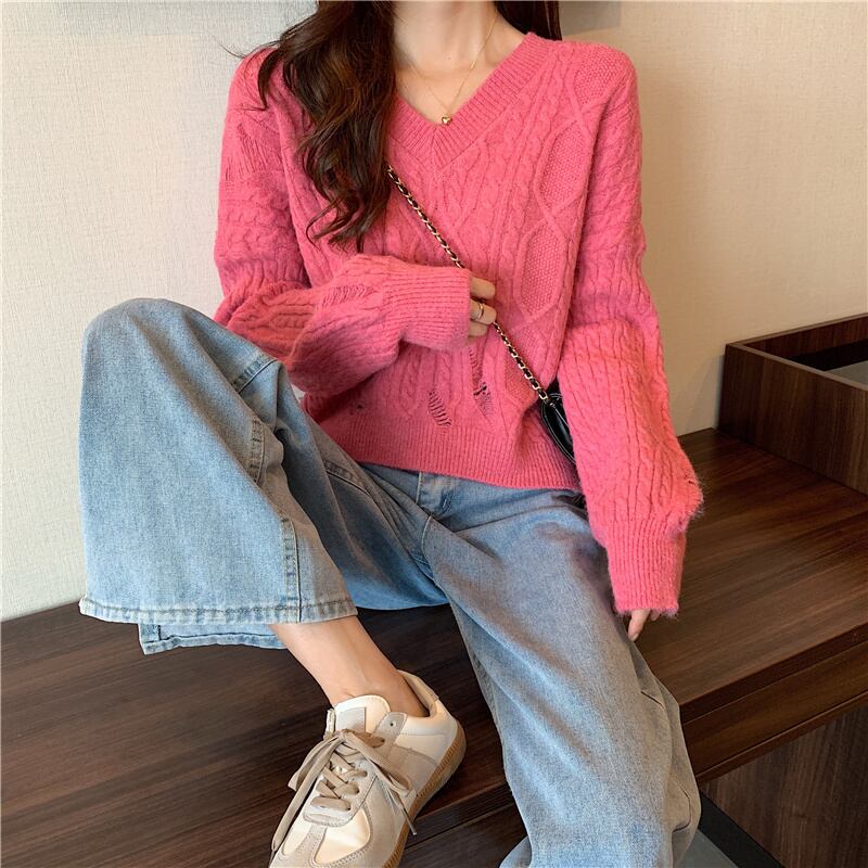 セーター レディースオータムウィンタースタンダードスタイルVネックルーズ薄手ショートニットトップス ロング レトロ 秋物 冬物 1号婦人60865648330