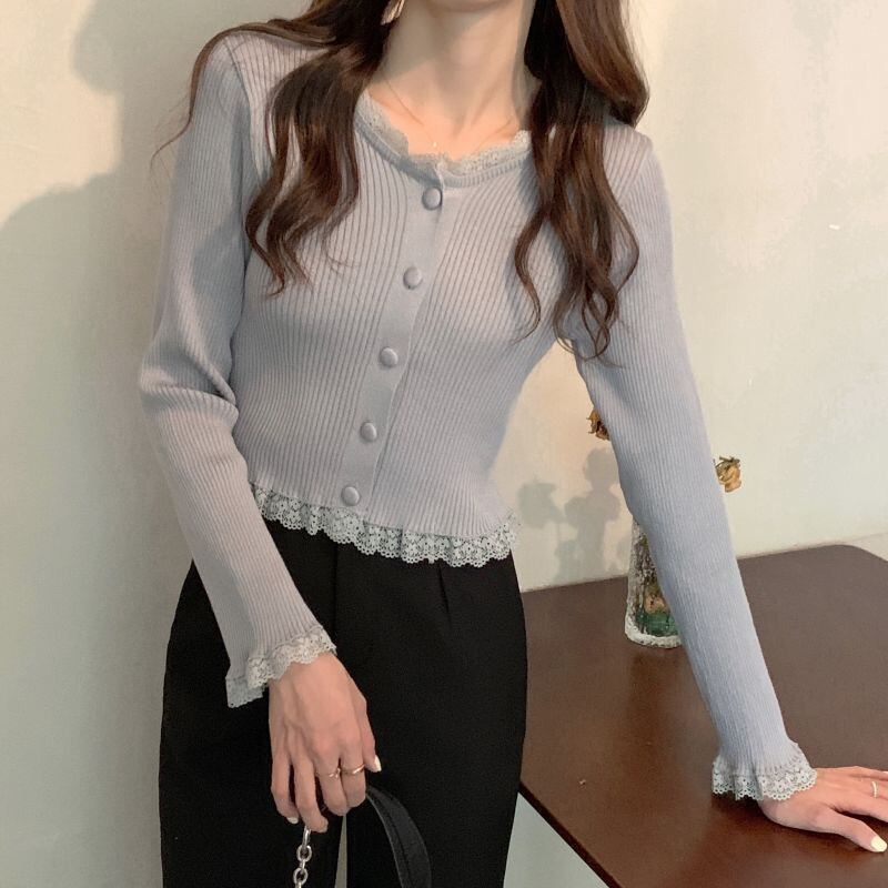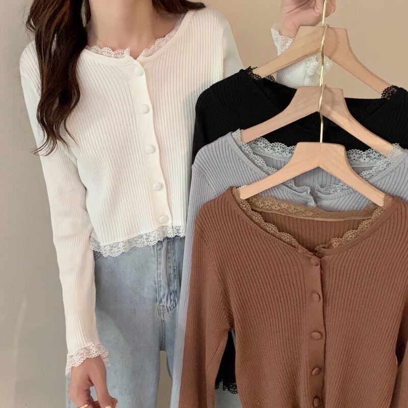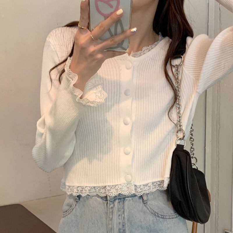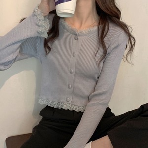 オータムブラウス レディースニットセーター レースカーディガン ロング 秋物 ステッチ 1号婦人21255331235