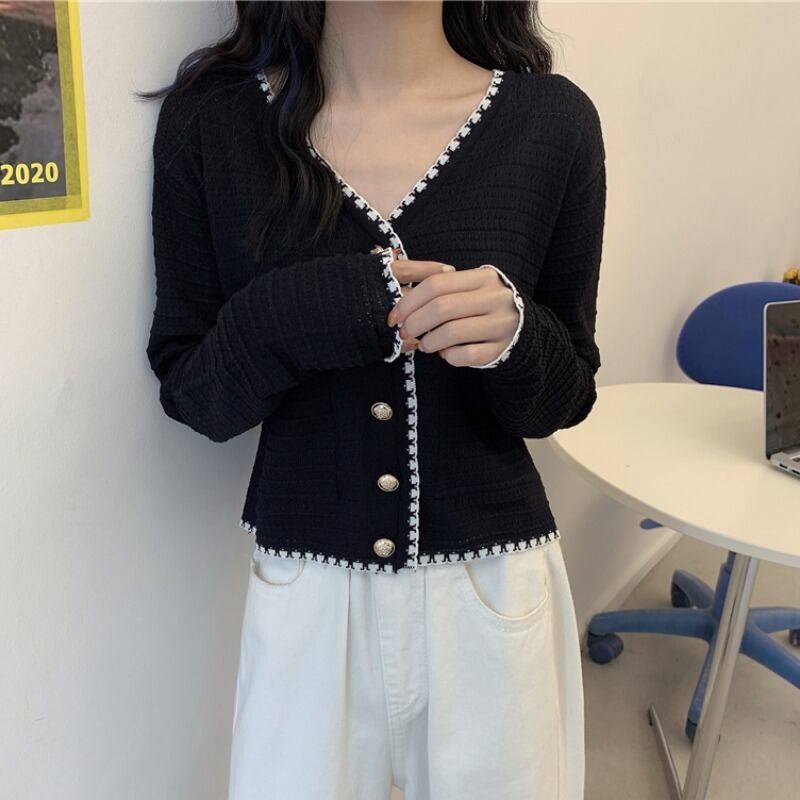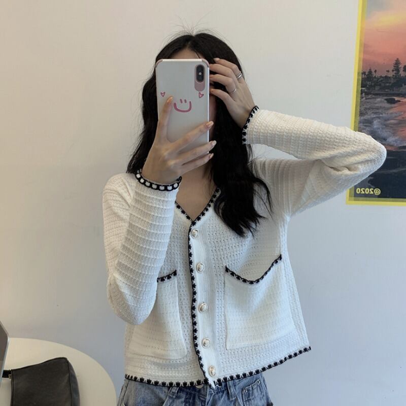 オータムトップス セーター ルーズ薄手Vネックショートカーディガンジャケット ロング 秋物 1号婦人21641455682