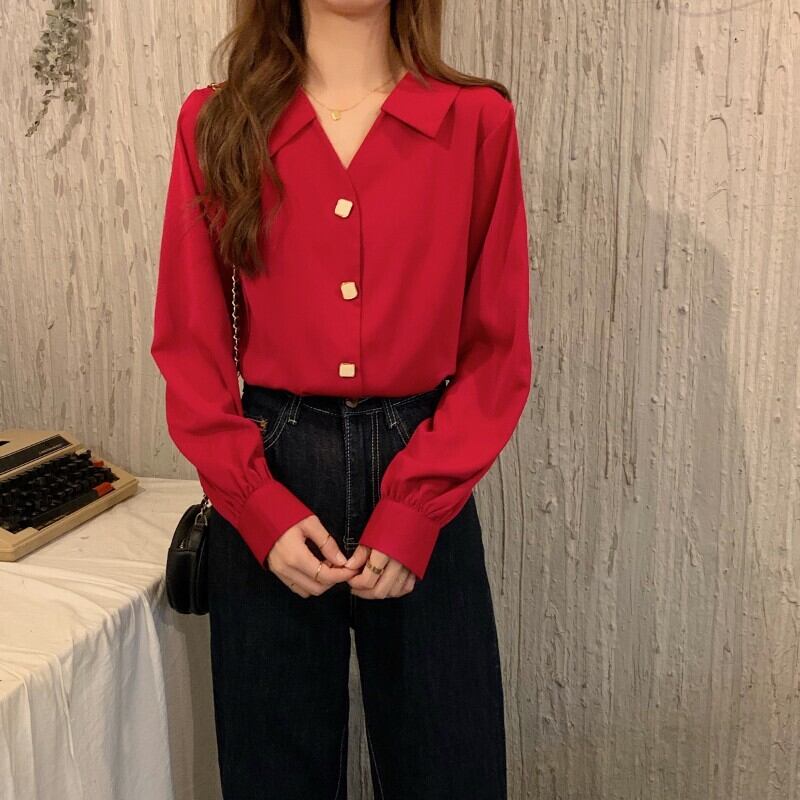シャツ オータムトップス スタンダードカラーシフォン レトロ 秋物 1号婦人93345042771