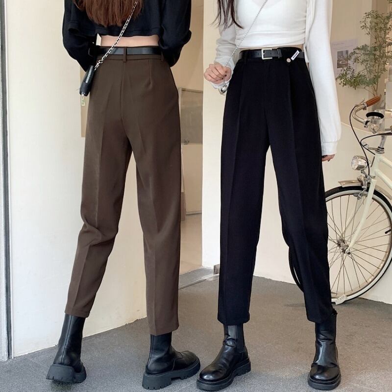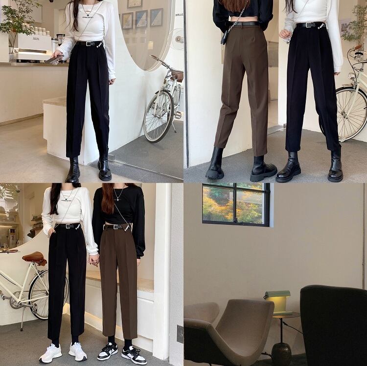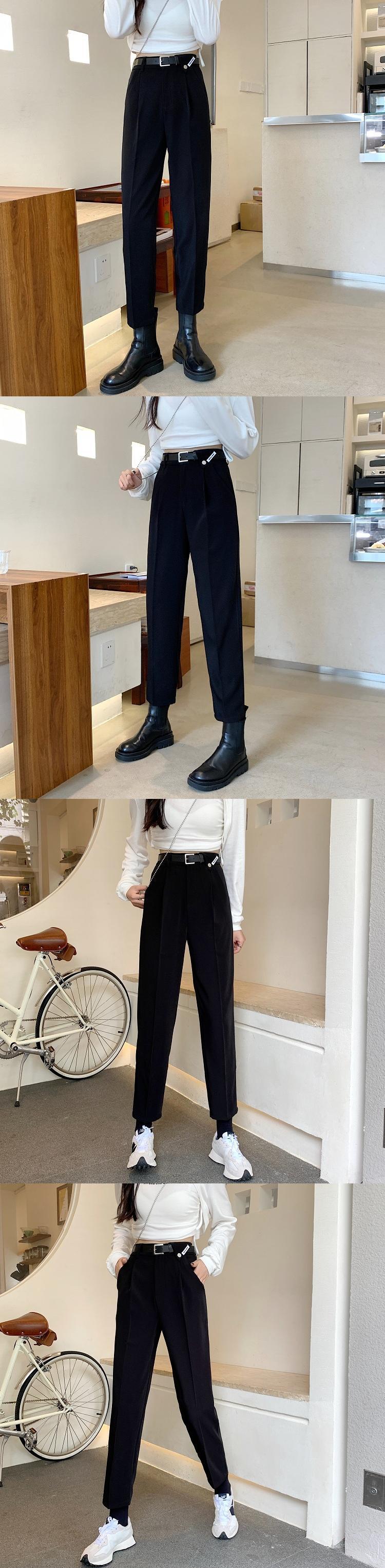 ブラックカジュアルパンツ スプリングオータムルーズ薄手ハイウェストウェスト 春物 秋物 1号婦人90485361057