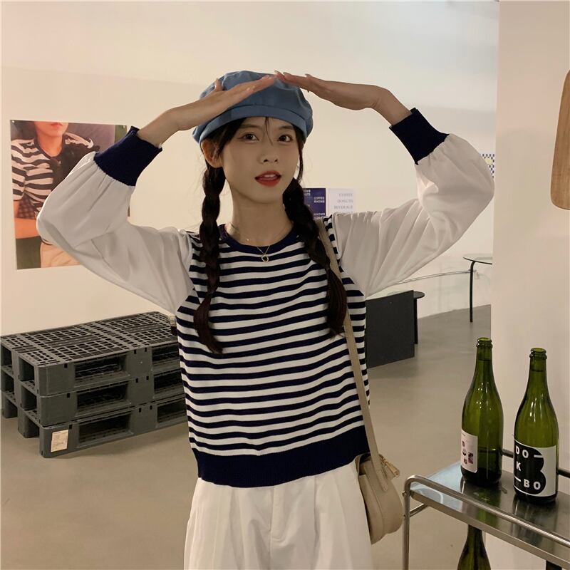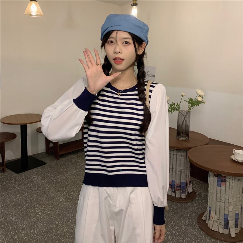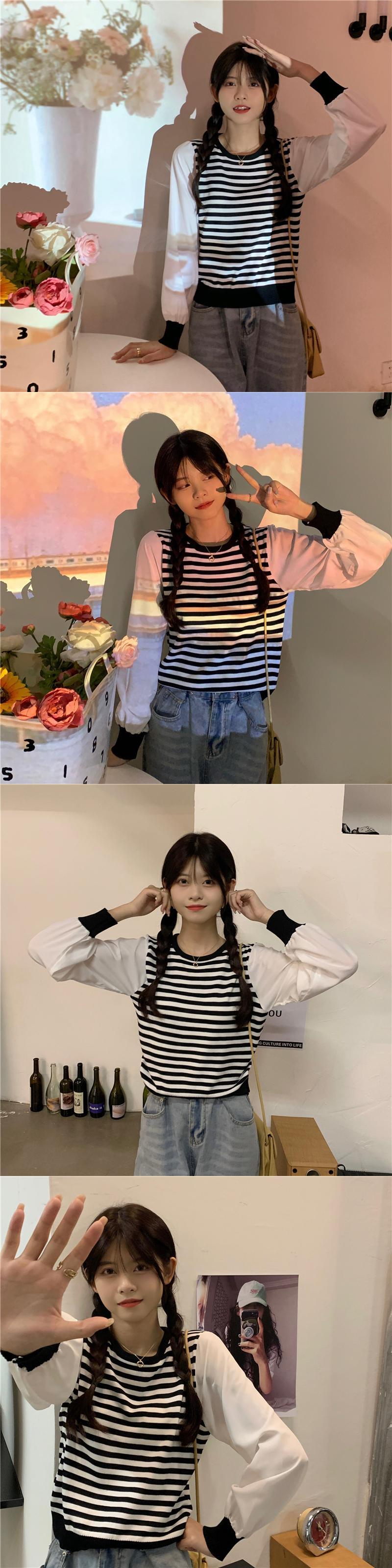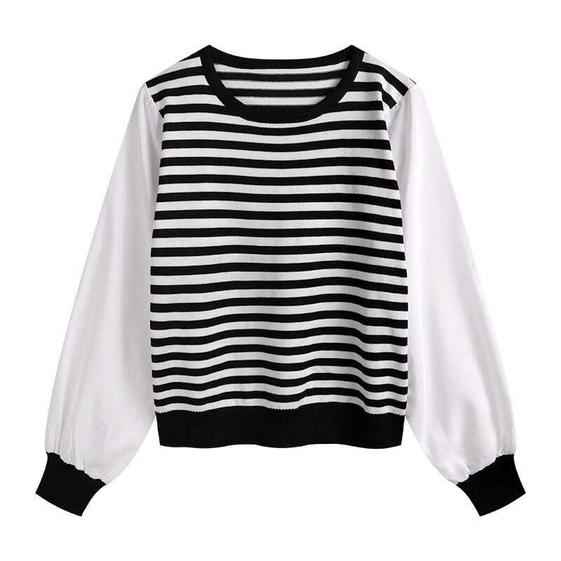 オータムトップス ストライプ ロング 秋物 ステッチ 1号婦人85250288249