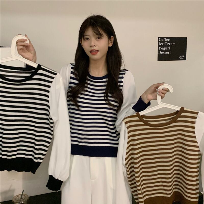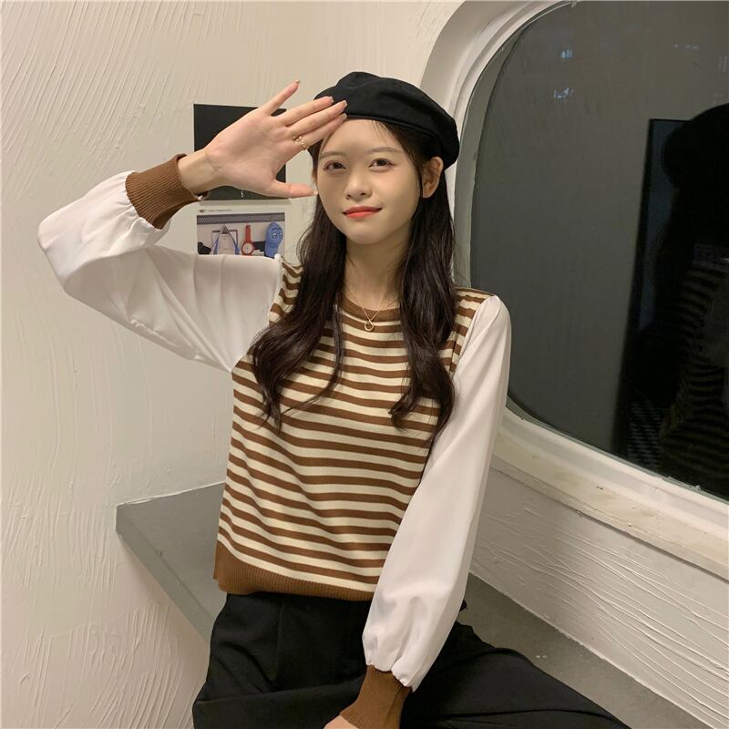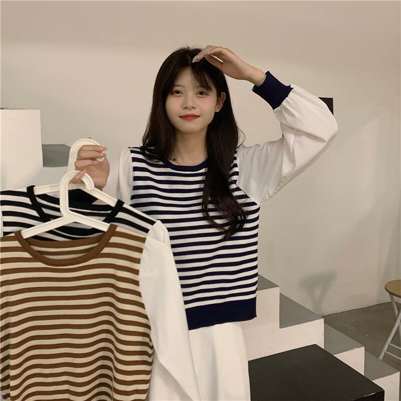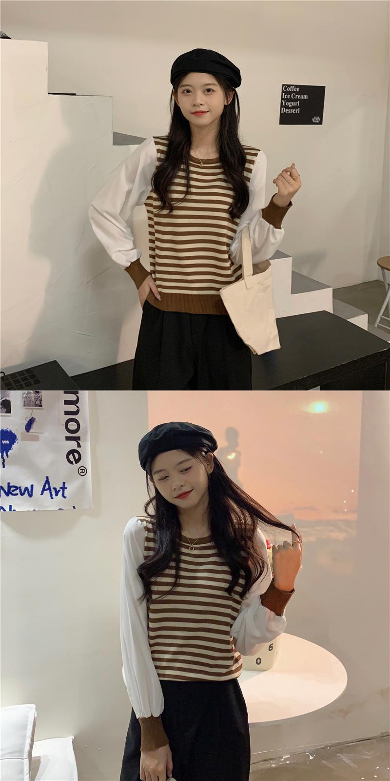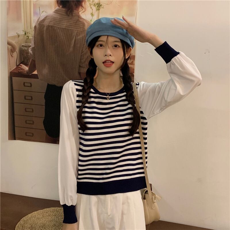 オータムトップス ストライプ ロング 秋物 ステッチ 1号婦人85250288249