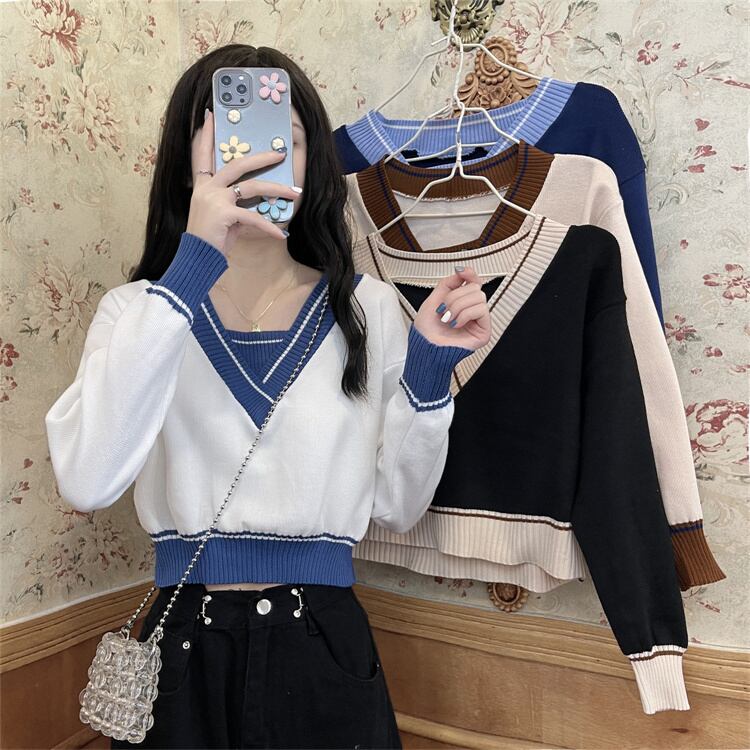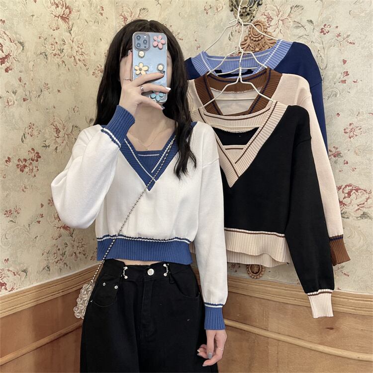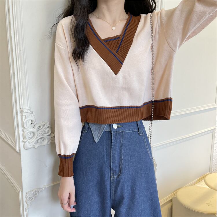 オータムブラウス セーター レディーススプリングVネックプルオーバー シャツ ロング 春物 秋物 1号婦人65891993875