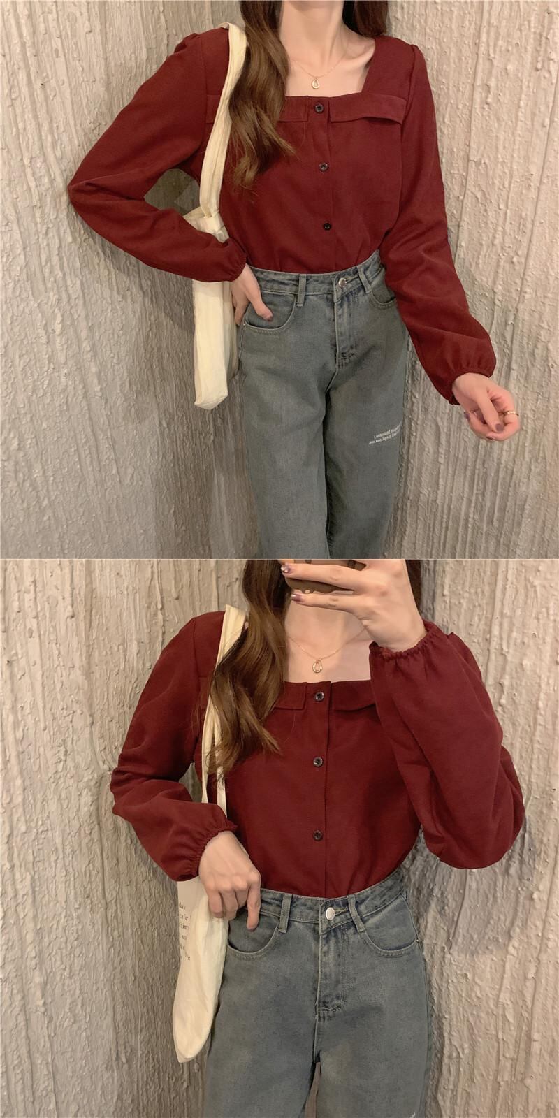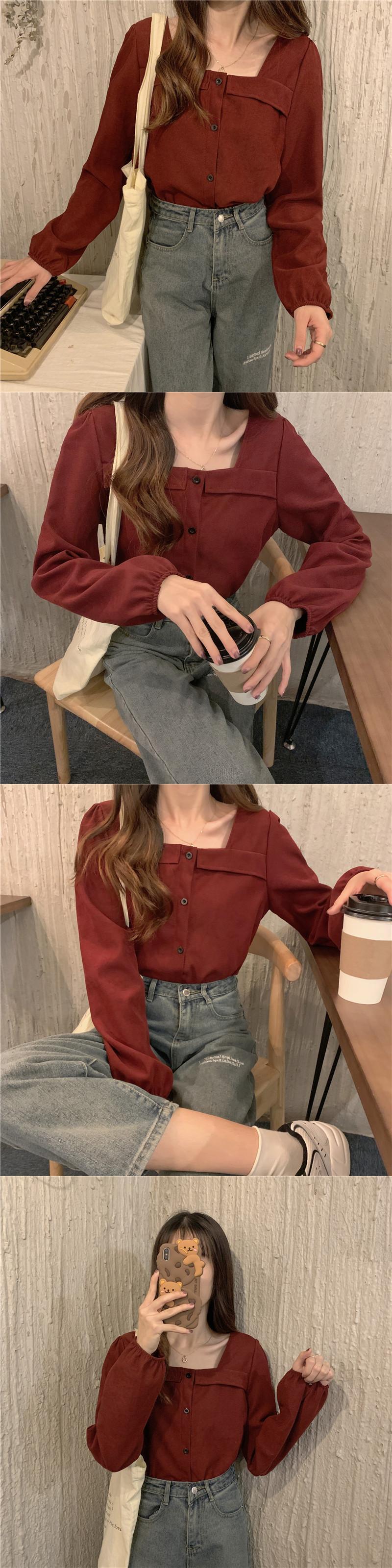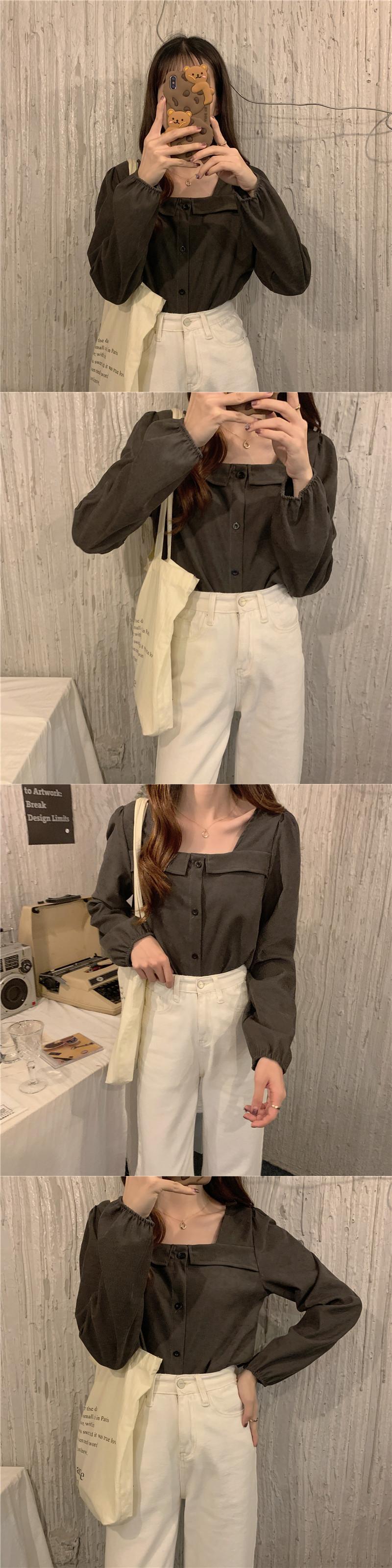オータムトップス カラーホワイトシャツ ロング 秋物 スクウェア 1号婦人10284558442