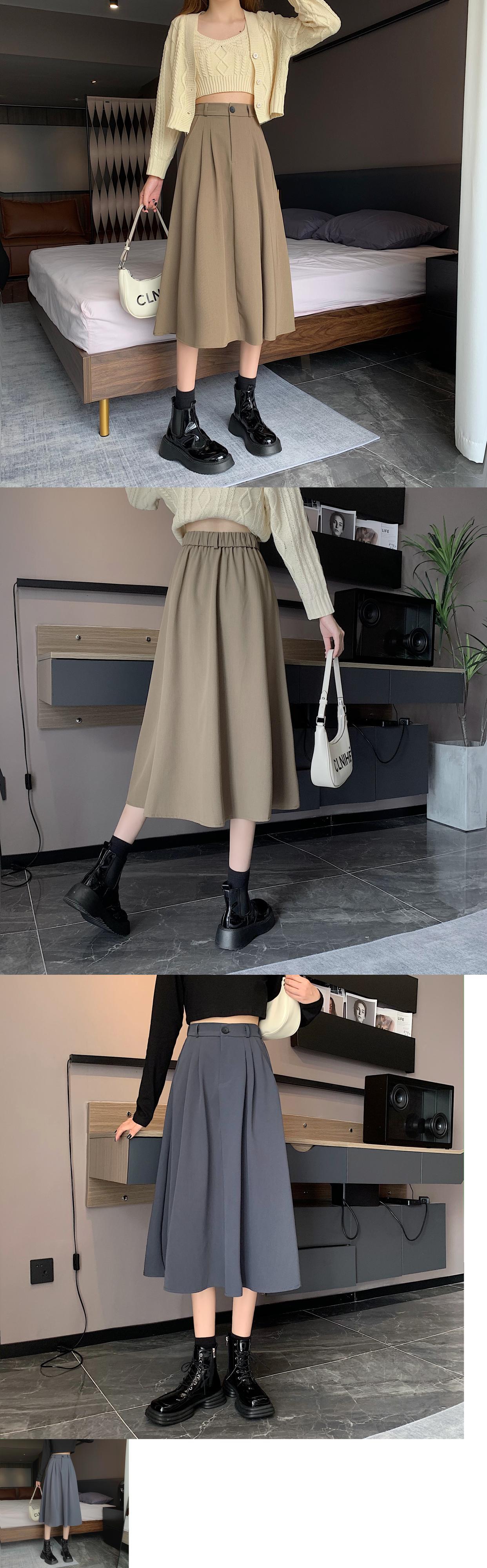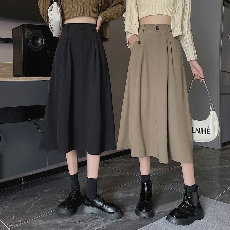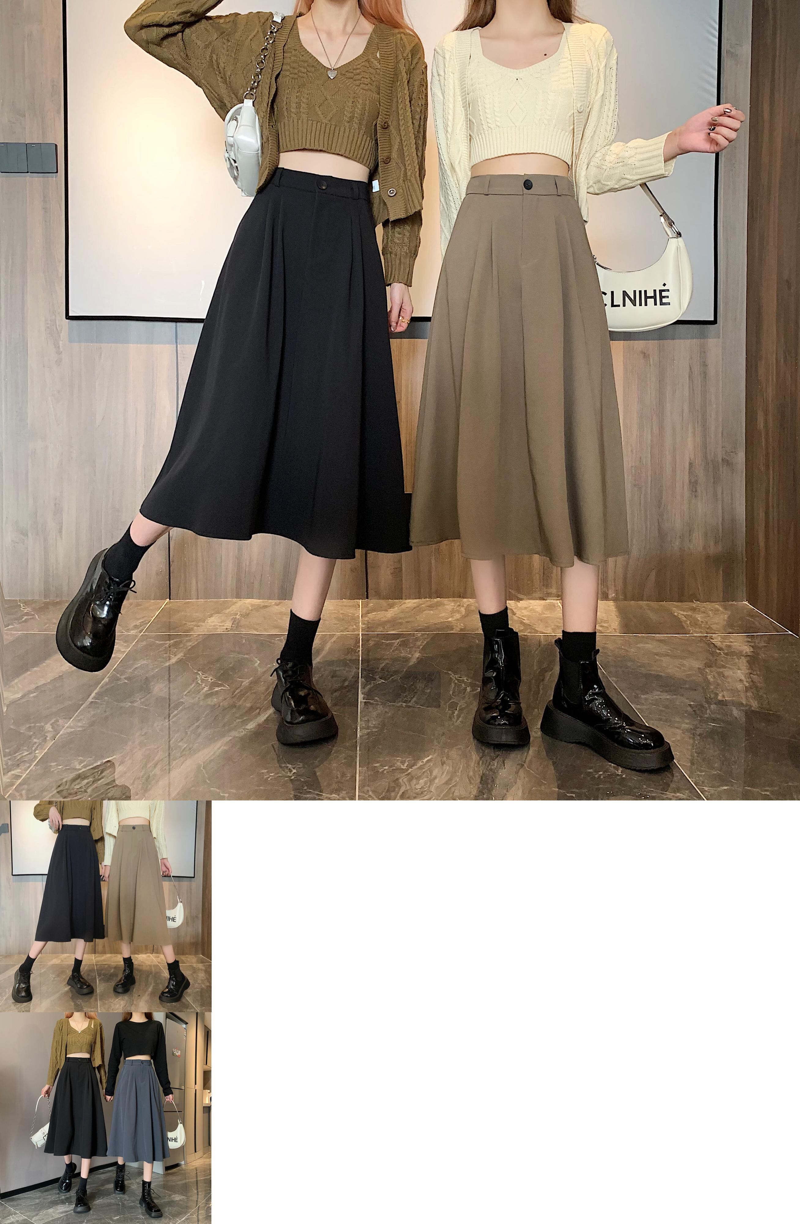 スカート スプリングオータムプリーツハイウェストウェストブラックAライン 春物 秋物 1号婦人85933516664