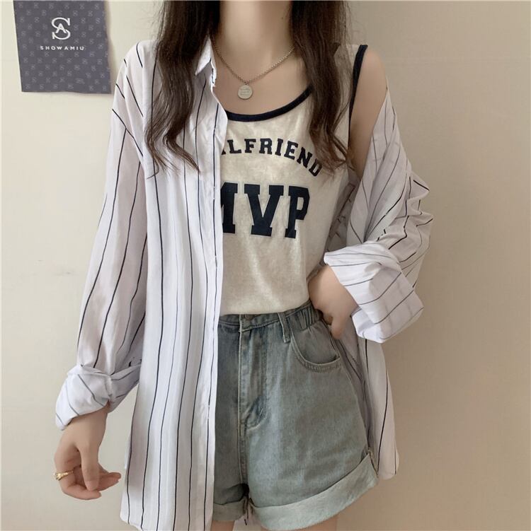 サマープリント柄ノースリーブストライプシャツ ロング 夏物 1号婦人16229628074