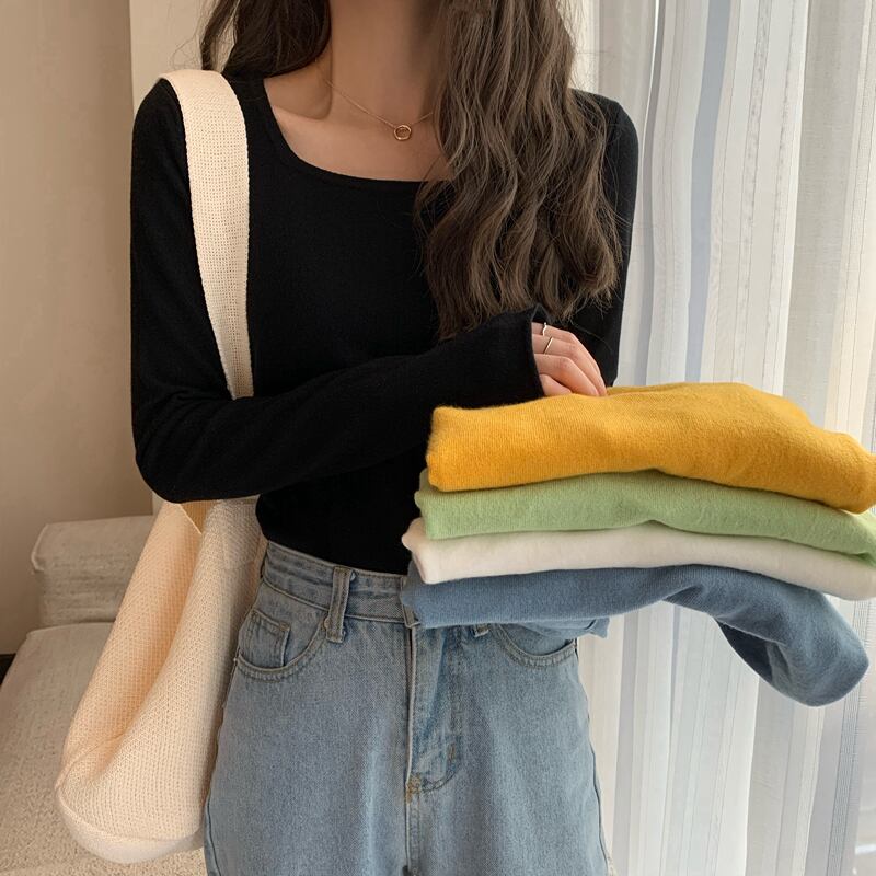 オータムトップス レディースニットセーター カラーシャツ ロング 秋物 スクウェア 1号婦人7596795487