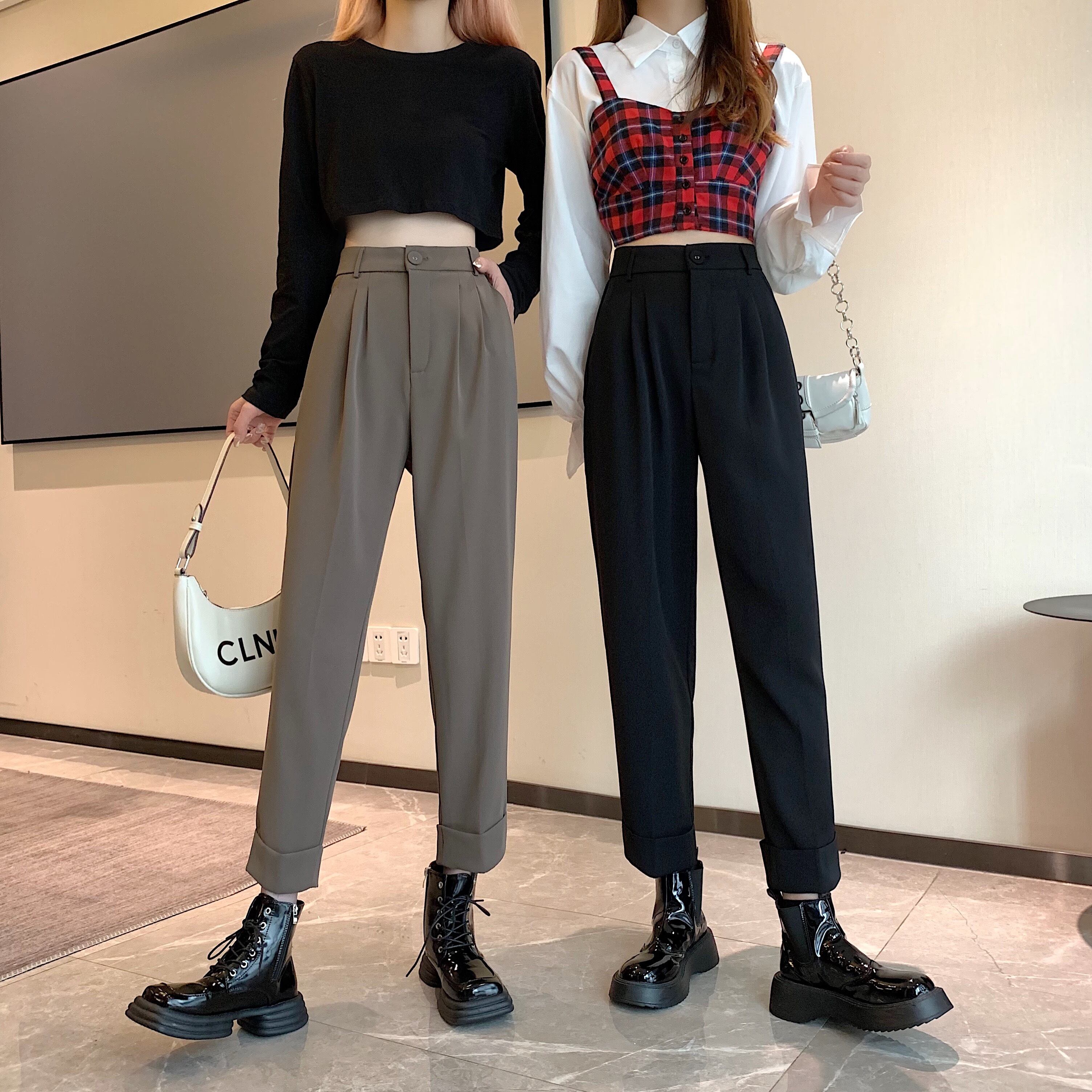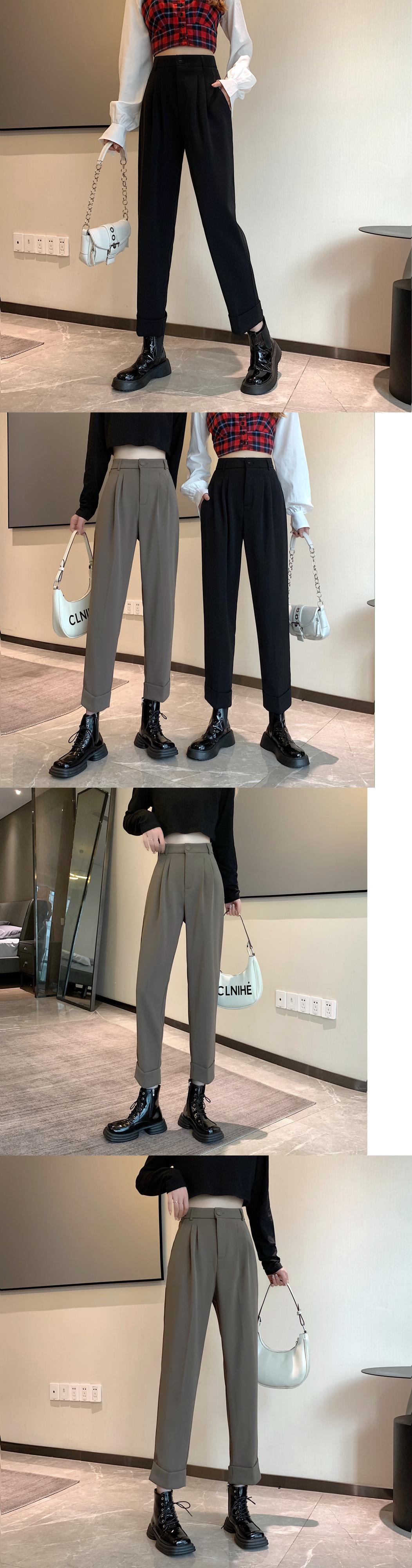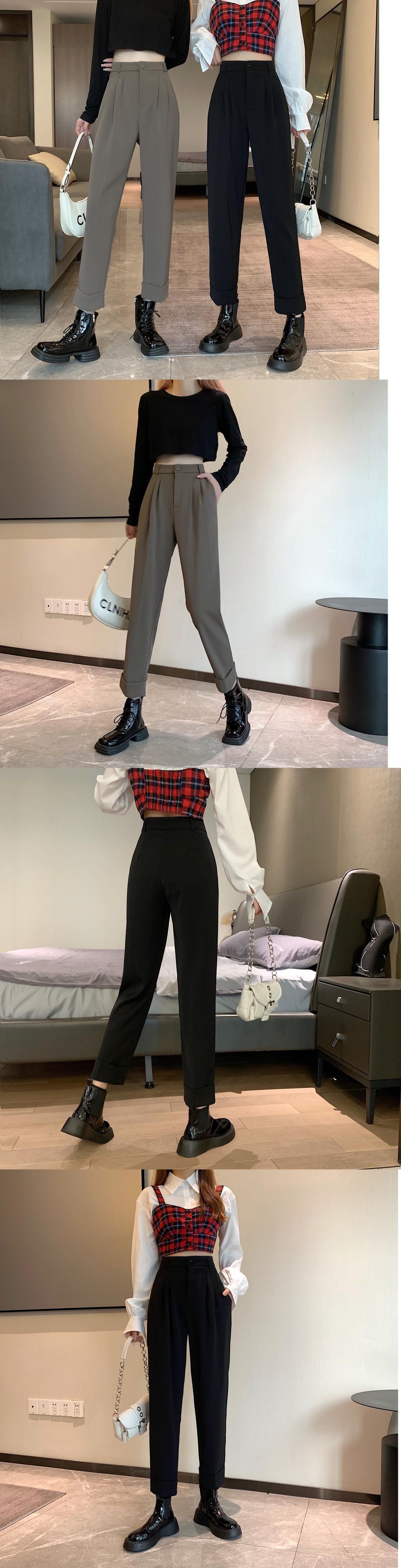 パンツ スプリングオータムハイウェストブラックルーズクロップド 春物 秋物 1号婦人15285539899
