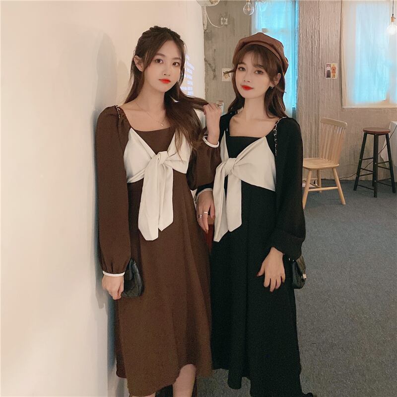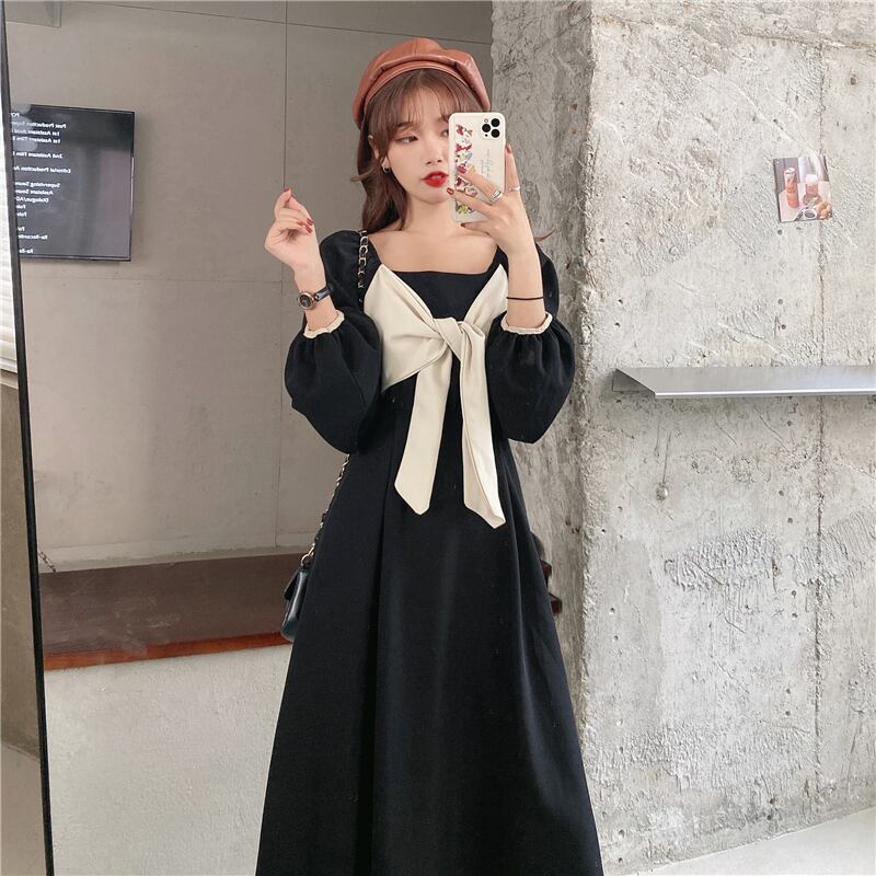 オータムドレス ワンピース スタイルウェストブラック 秋物 1号婦人50333531090