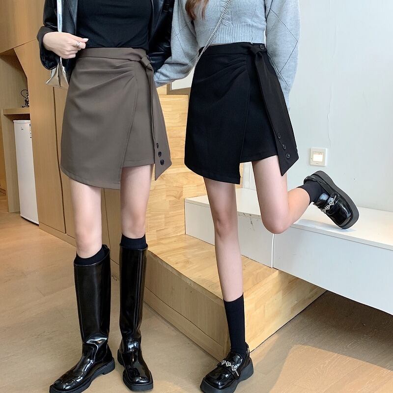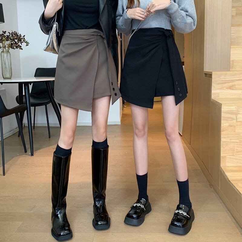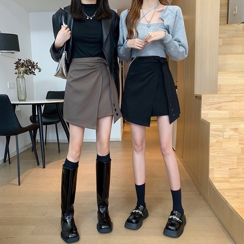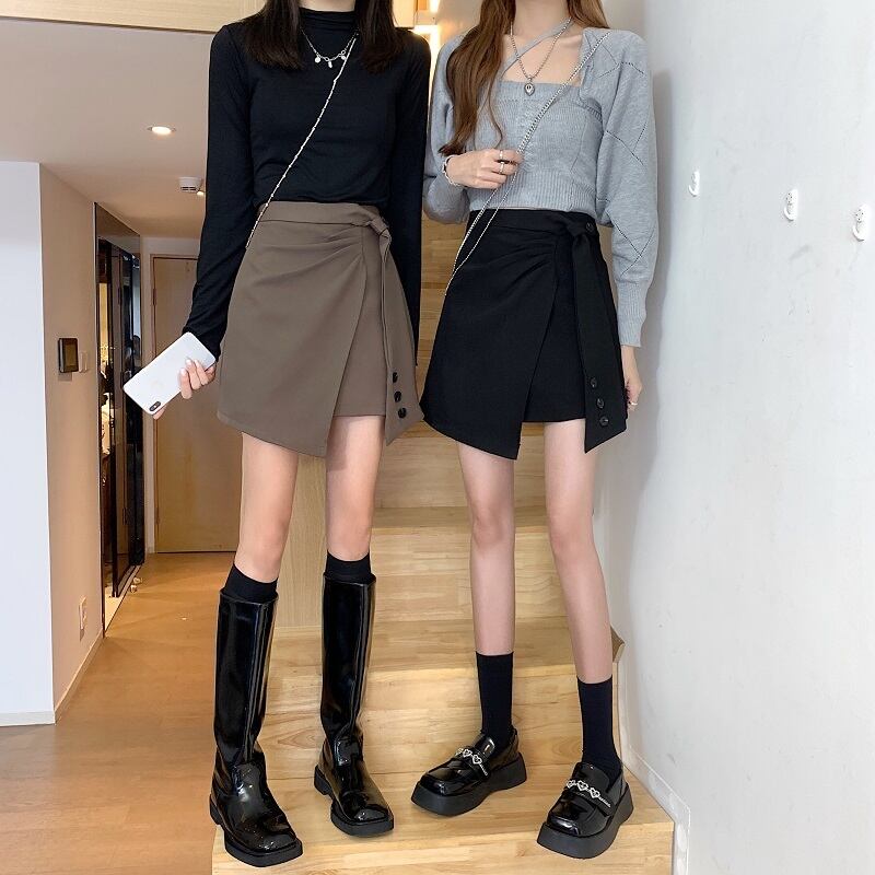 ブラックAラインスカート スプリングオータムハイウェスト レッド 春物 秋物 1号婦人37411761123