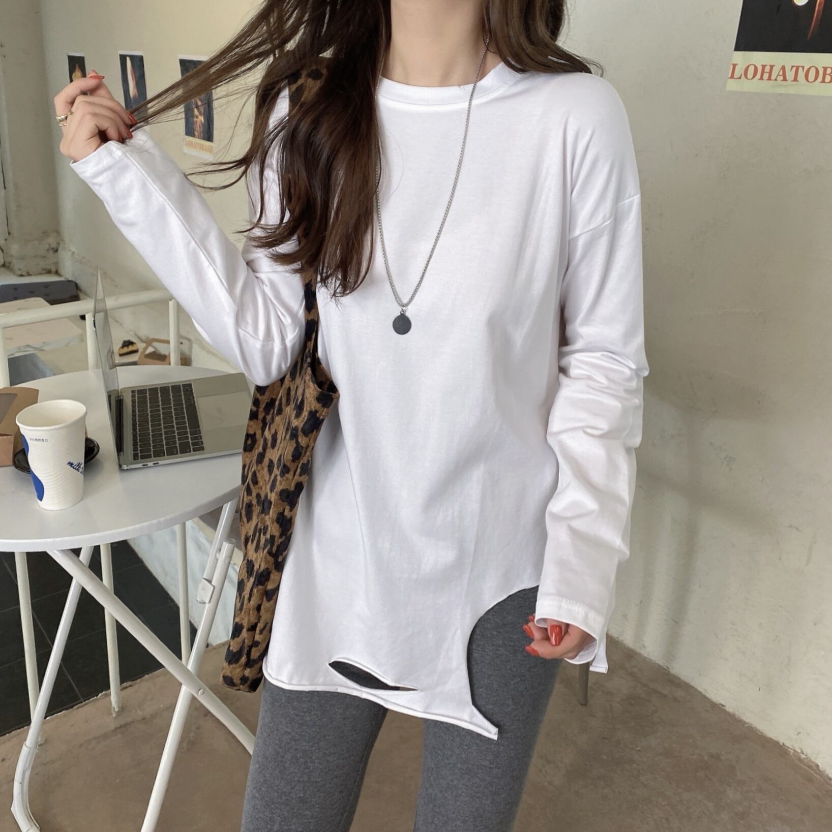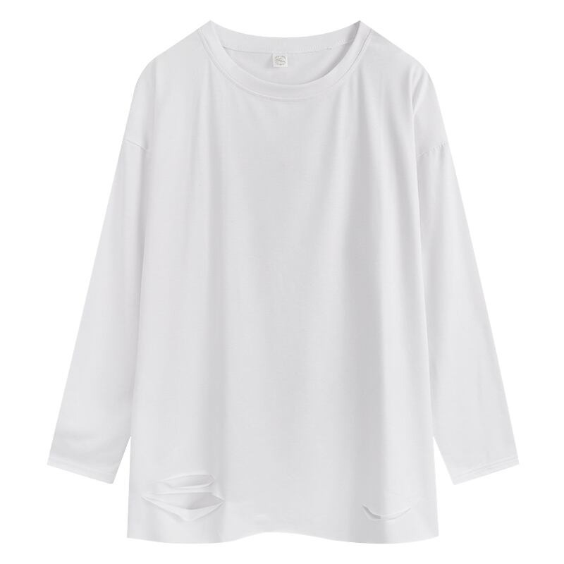 ホワイトTシャツ シャツ スプリングオータムルーズトップス ロング コットン 春物 秋物 1号婦人68999214337