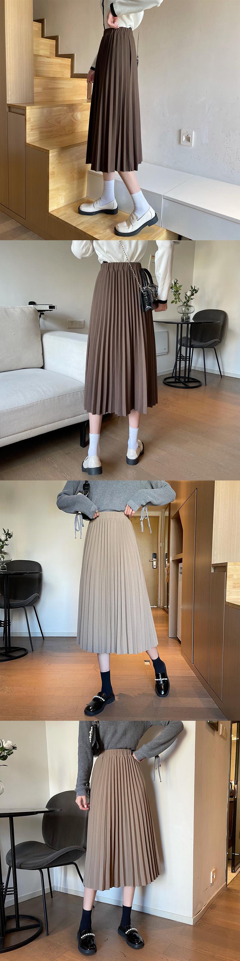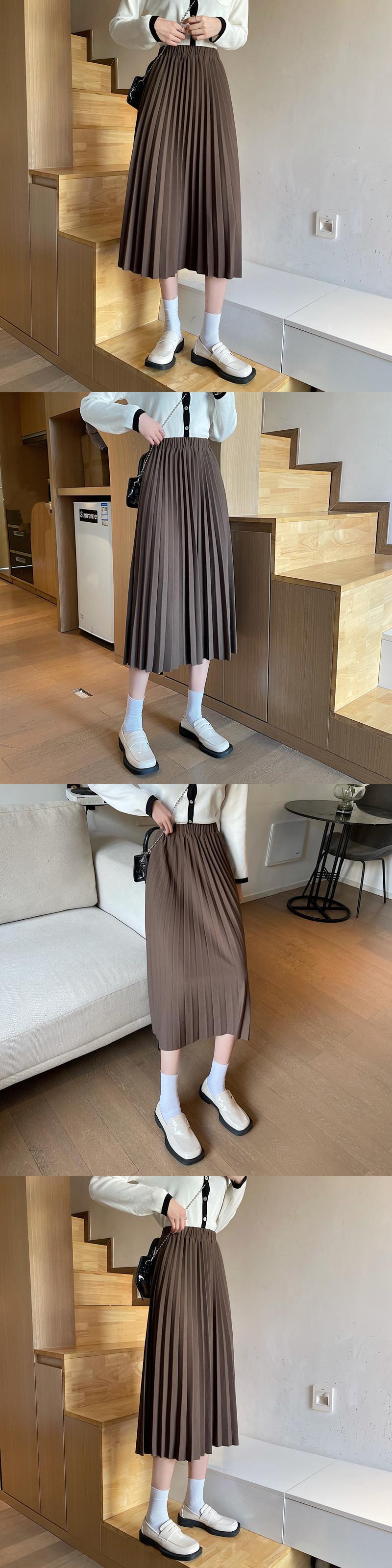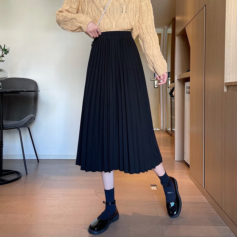 Aラインスカート スプリングオータムスタイルハイウェストウェストブラック薄手プリーツ 春物 秋物 1号婦人59280934859