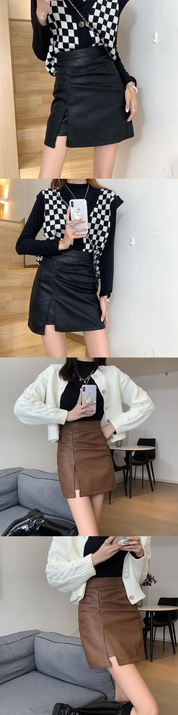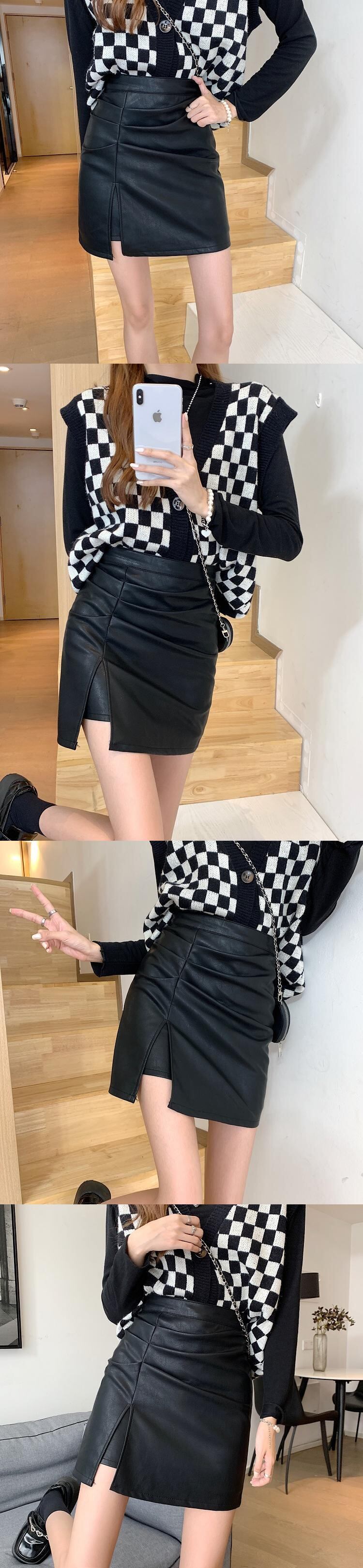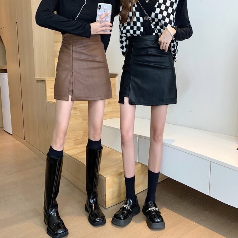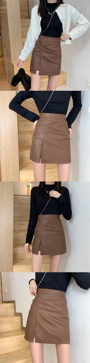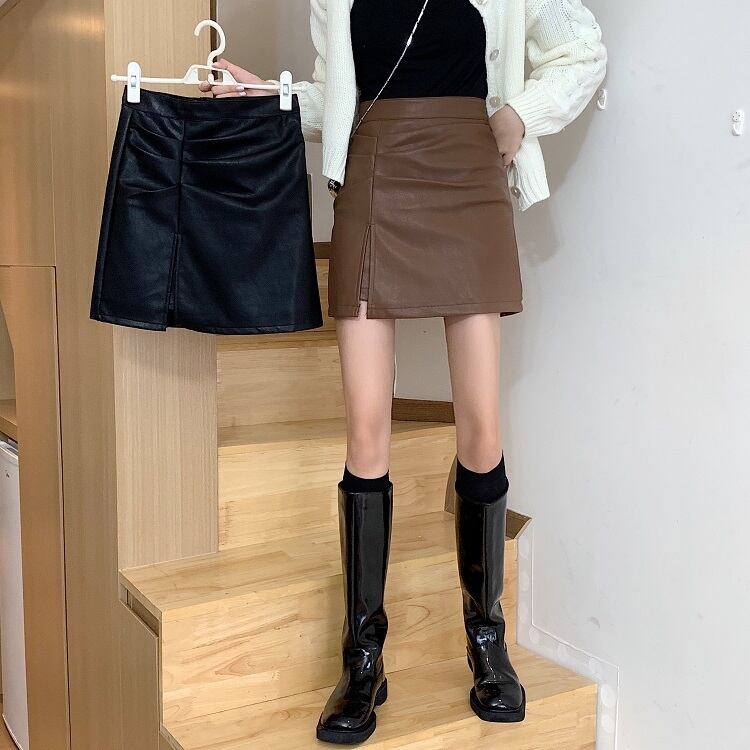 スカート ハイウェスト薄手レザーショート オータム 秋物 ウィンター 冬物 1号婦人44374316475