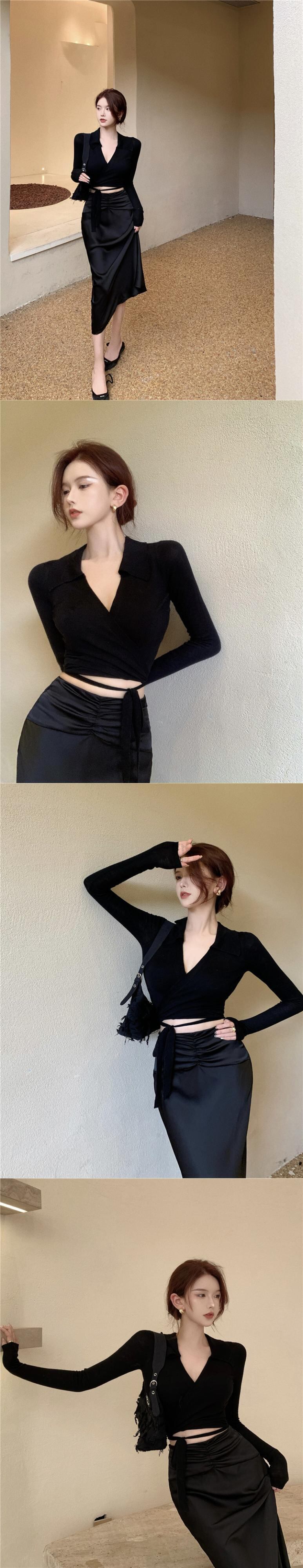 色:黒いセーター,グリーンニット,ブラウンニット,ブラックアセテートラップヒップスカート