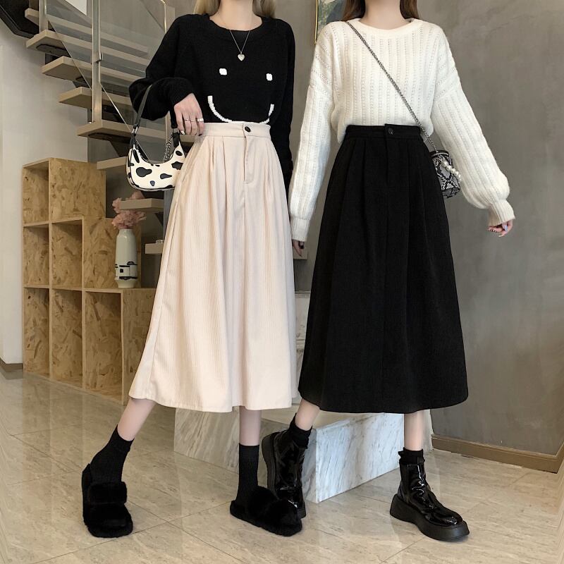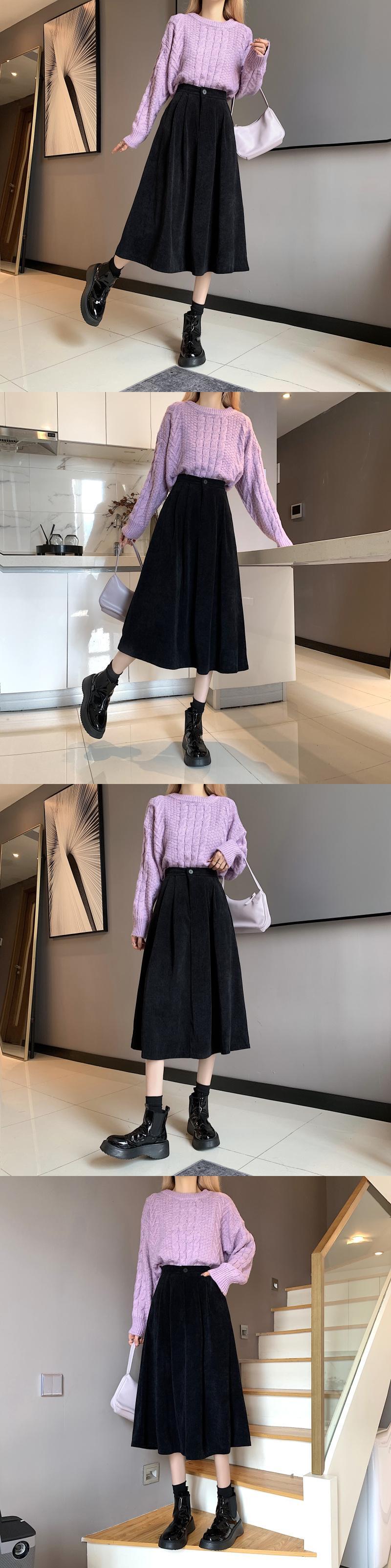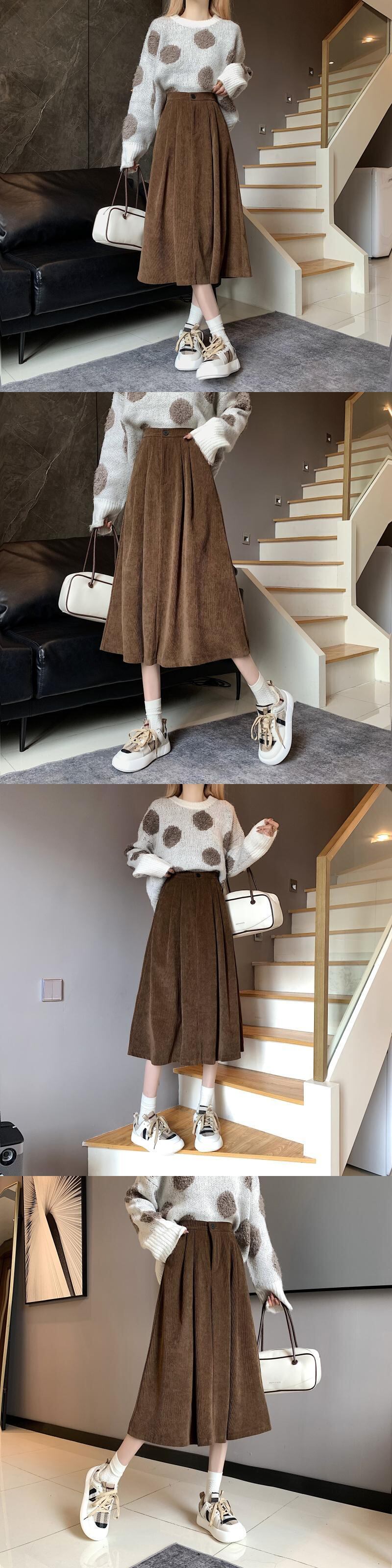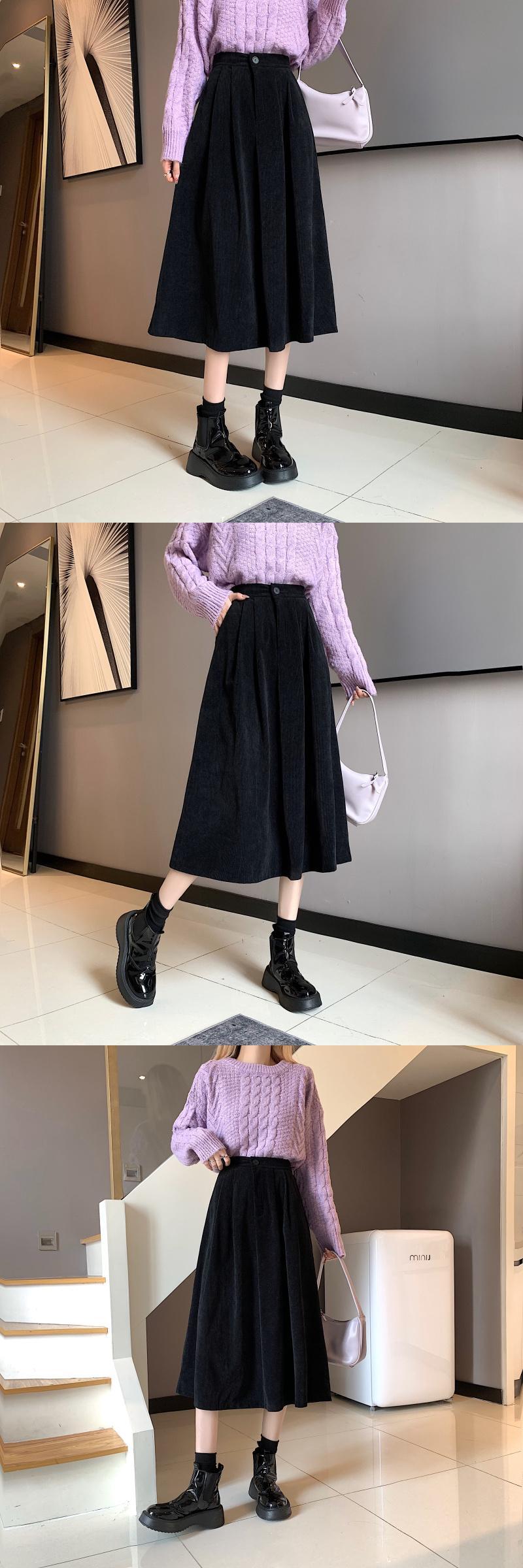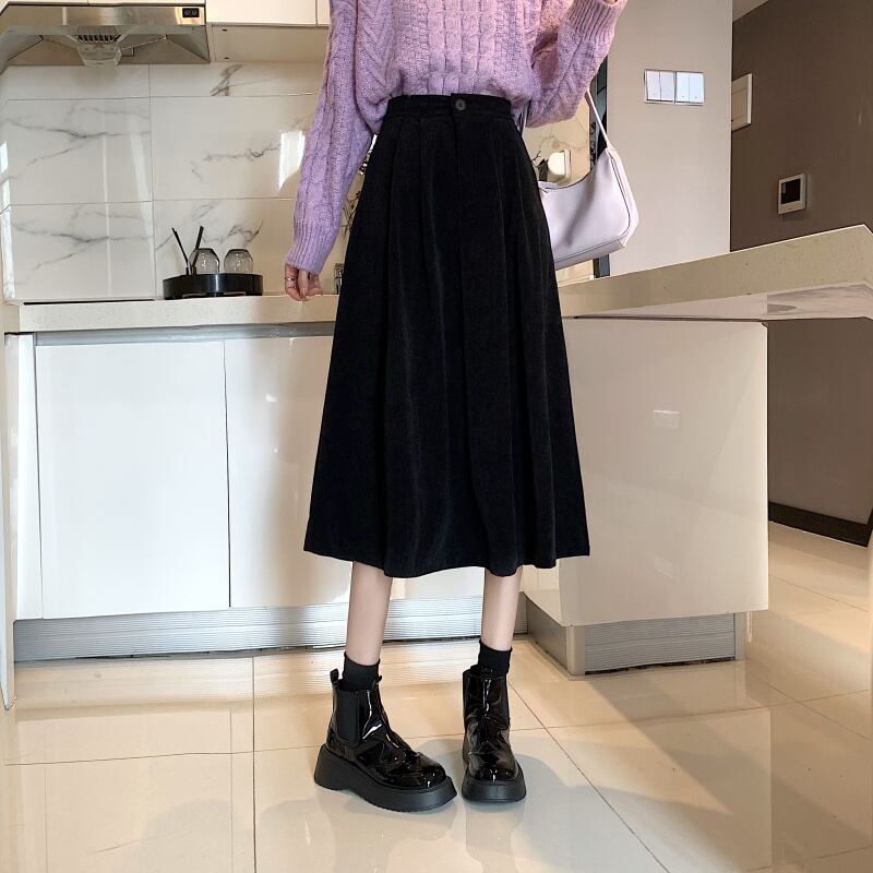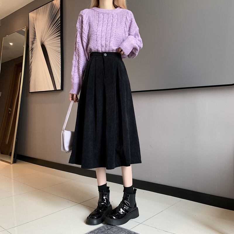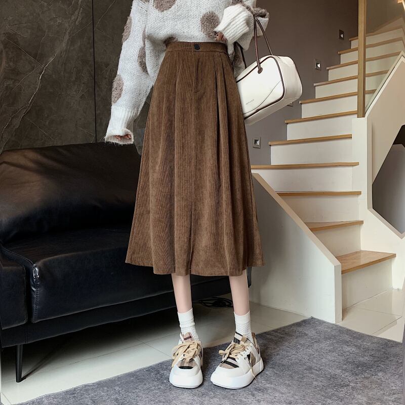 スカート オータムウィンターウェスト薄手コーデュロイ 秋物 冬物 1号婦人93573294501