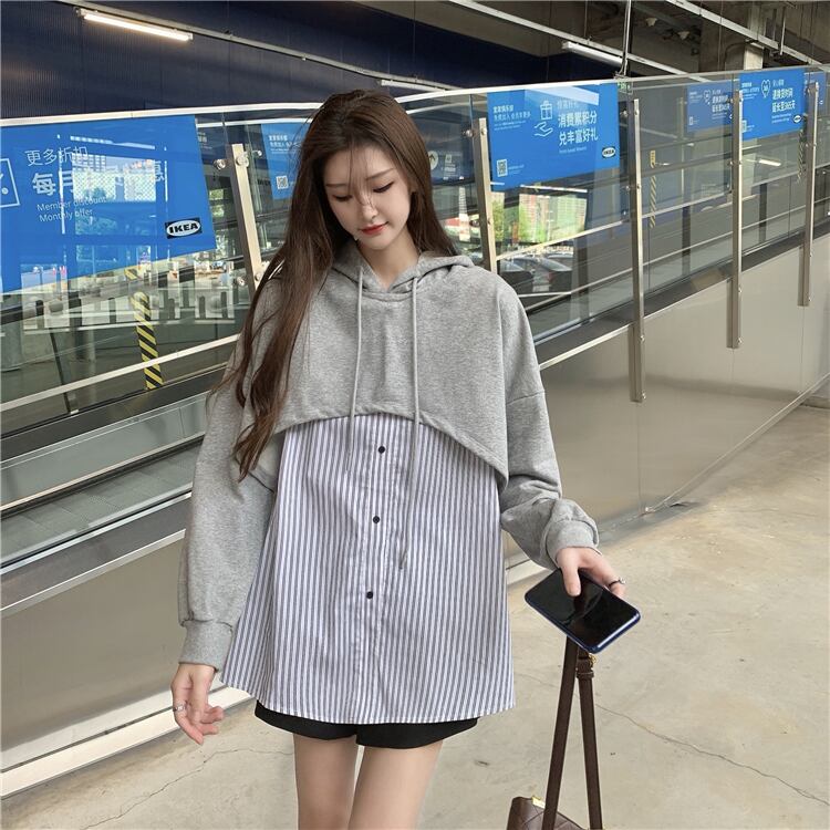 オータムセーター ギャザーフードルーズスリムトップス コート 秋物 ステッチ 1号婦人32433735162