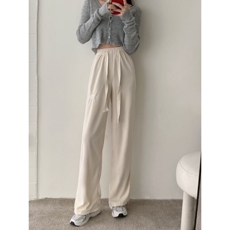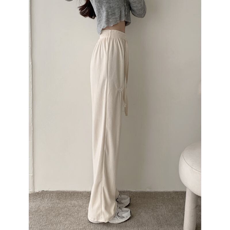 パンツ コーデュロイハイウェストウェストストレッチギャザーワイドレッグ エラスティック 伸縮 ウィンター 冬物 ワイドパンツ 1号婦人68293381219