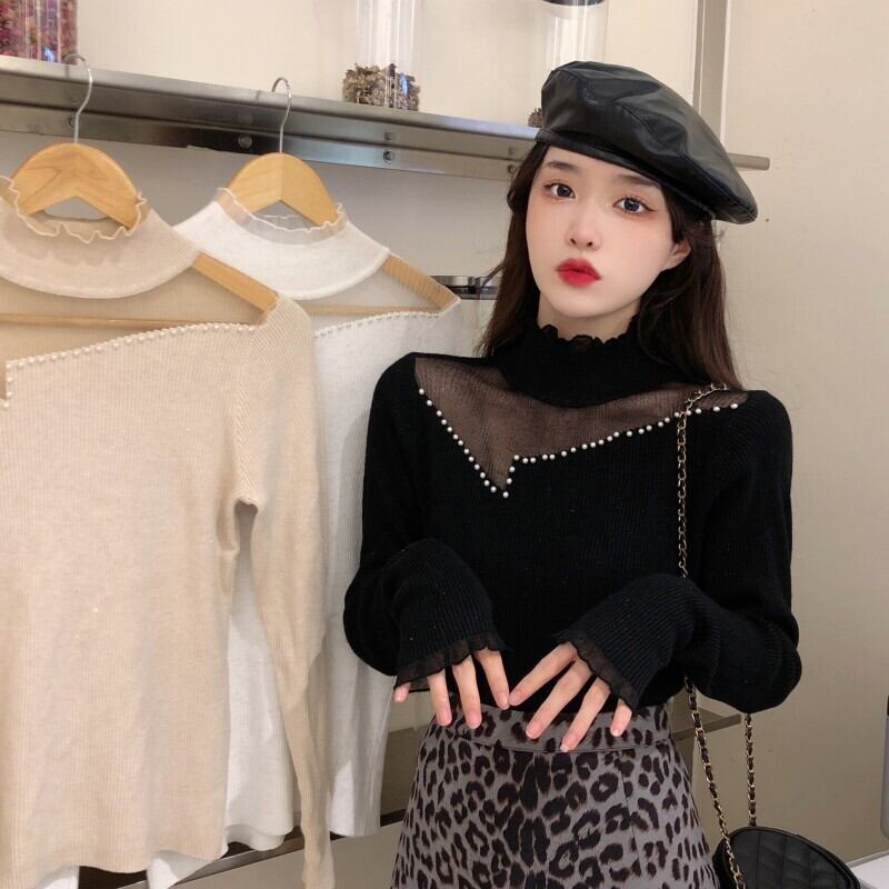 セーター ルーズオータムウィンターレーススリムトップス ロング 大人ガーリー スウィート キュート カジュアル 秋物 冬物 1号婦人38148851369