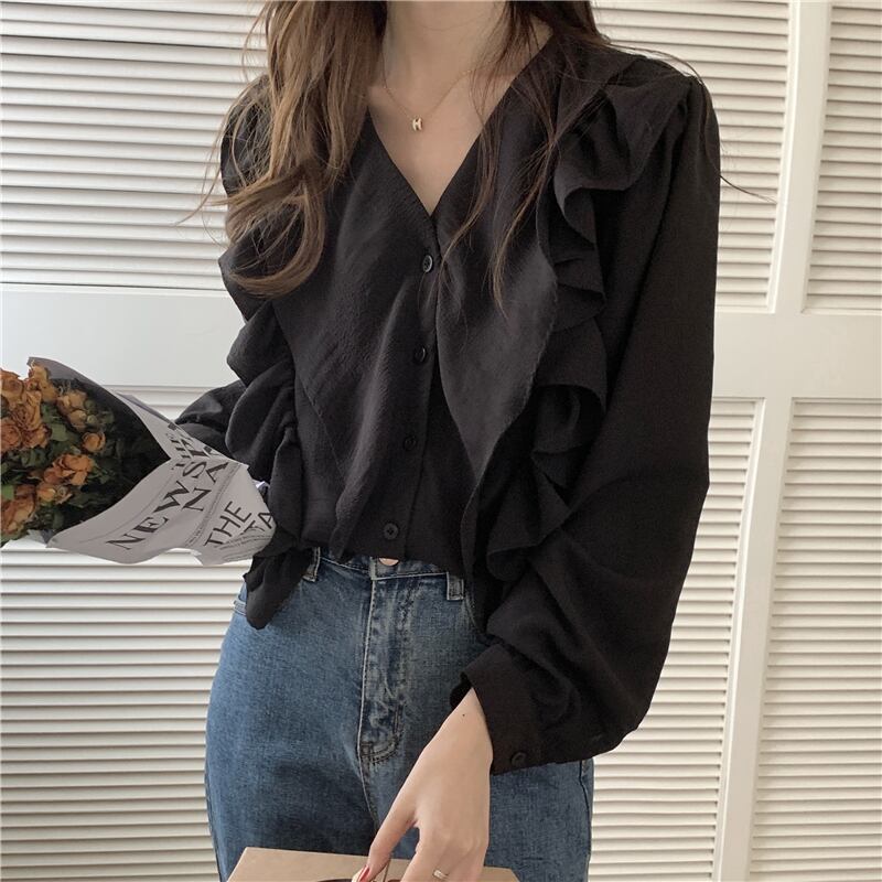 オータムウィンターシャツ スタイルVネックブラック ロング 秋物 冬物 1号婦人8598656419