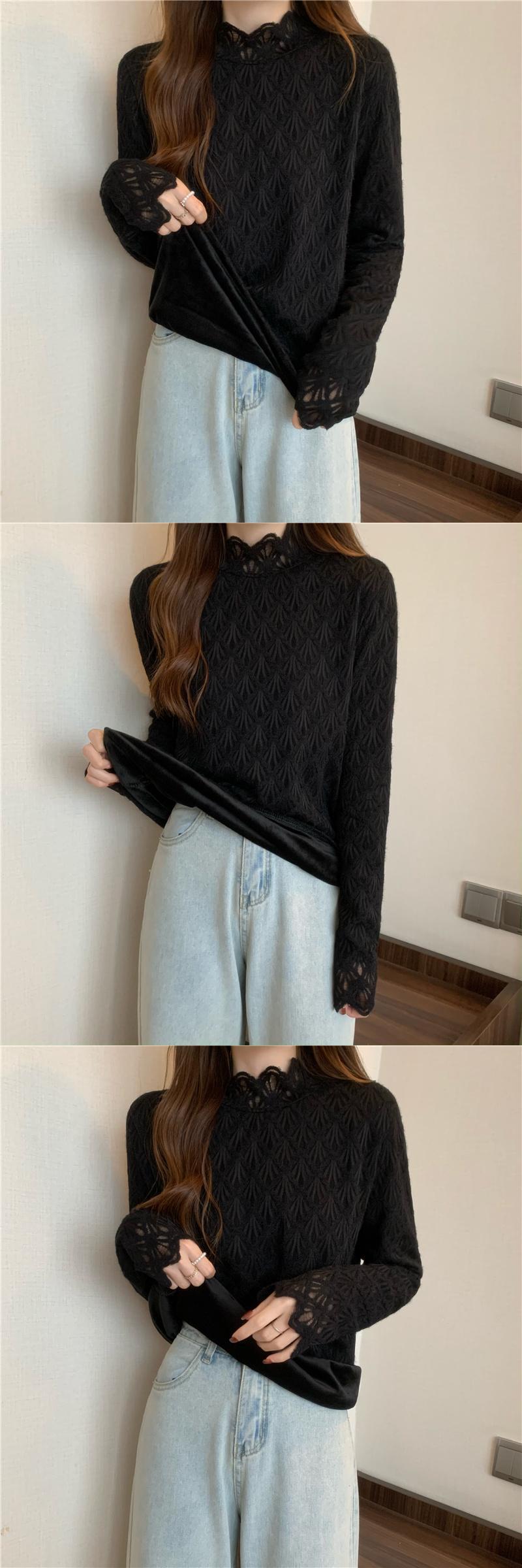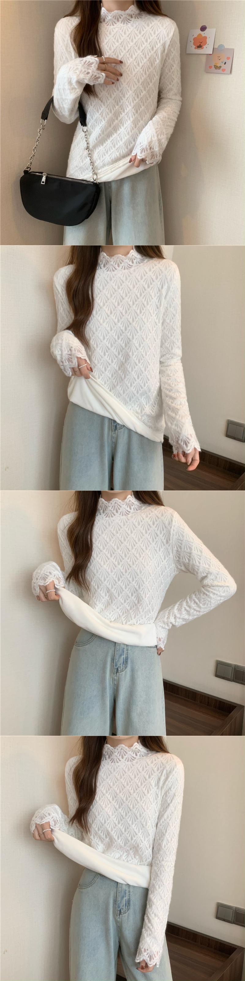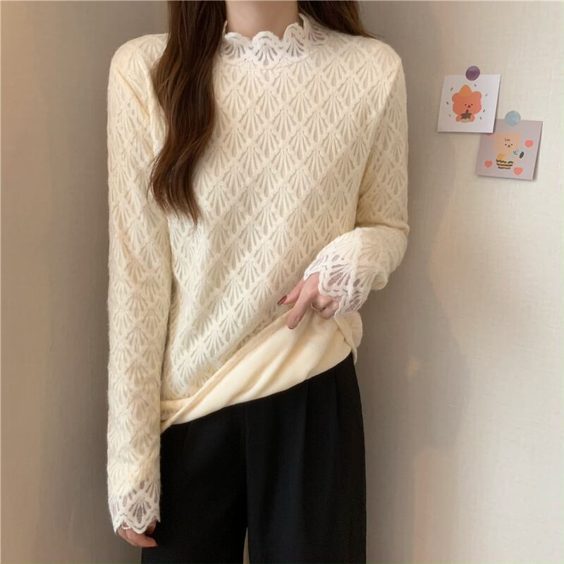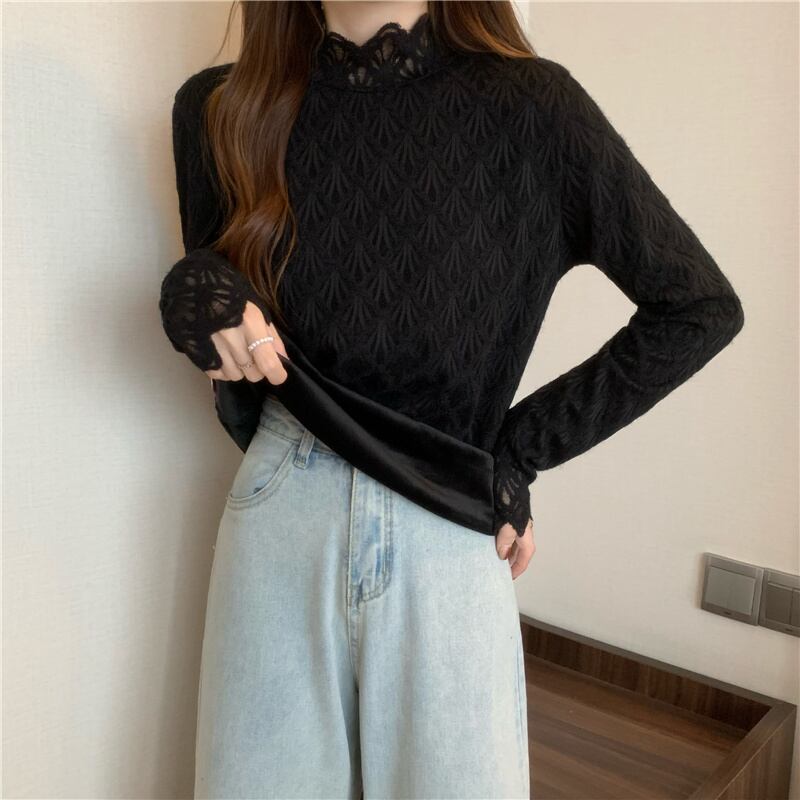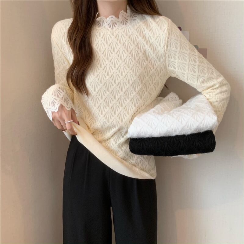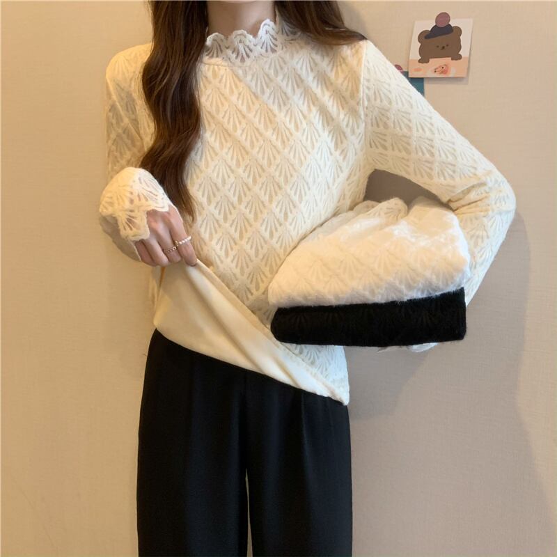 レースシャツ オータムウィンタースタイルホワイトベルベットトップス 秋物 冬物 1号婦人82118080950