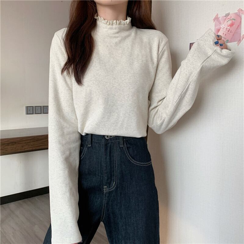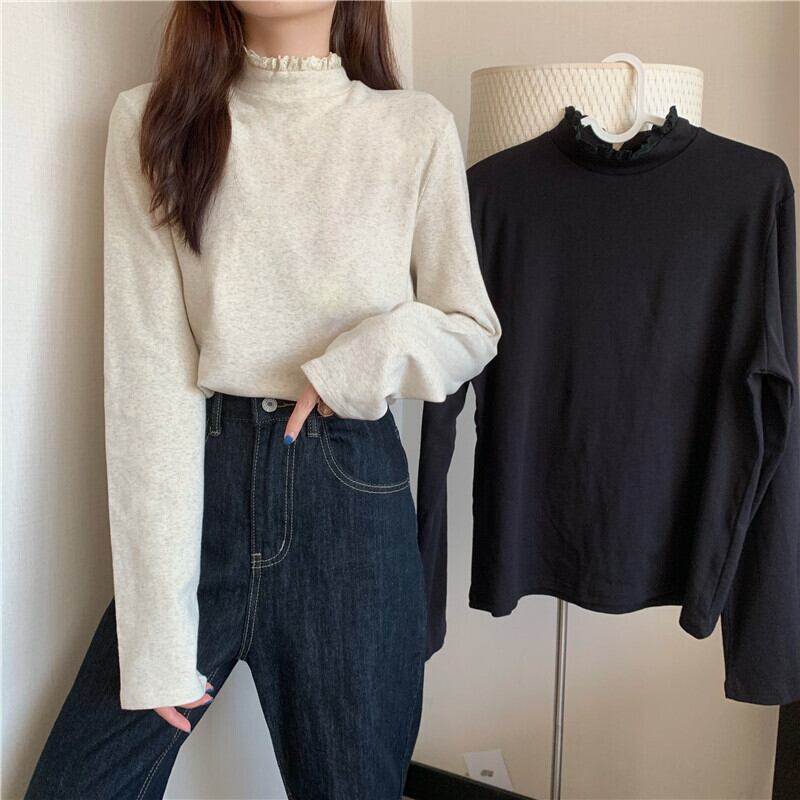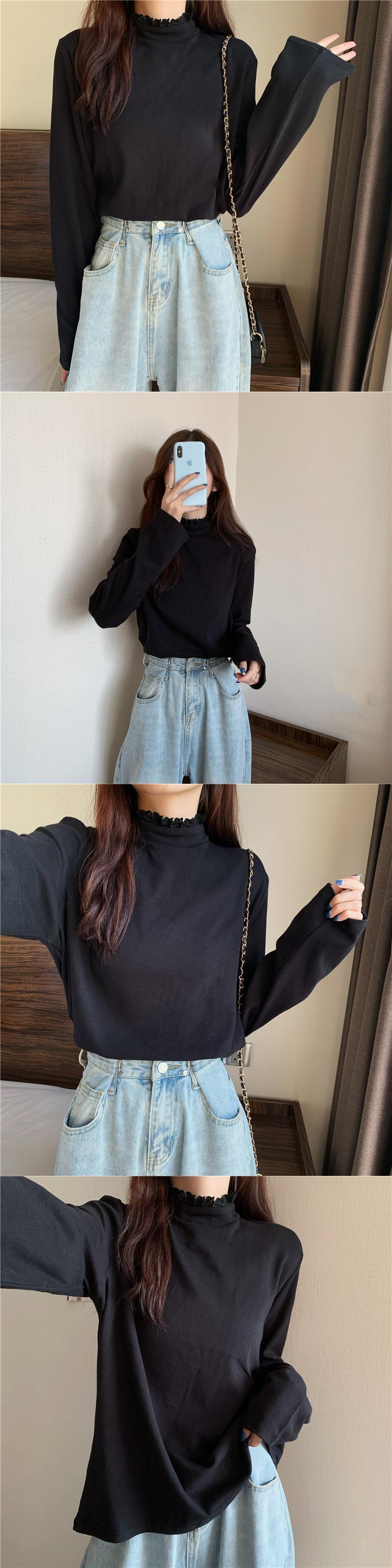 カラーシャツ オータムウィンタースタイルTシャツ ブラックトップス ロング 秋物 冬物 1号婦人9275843510