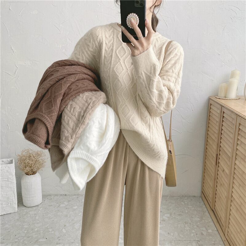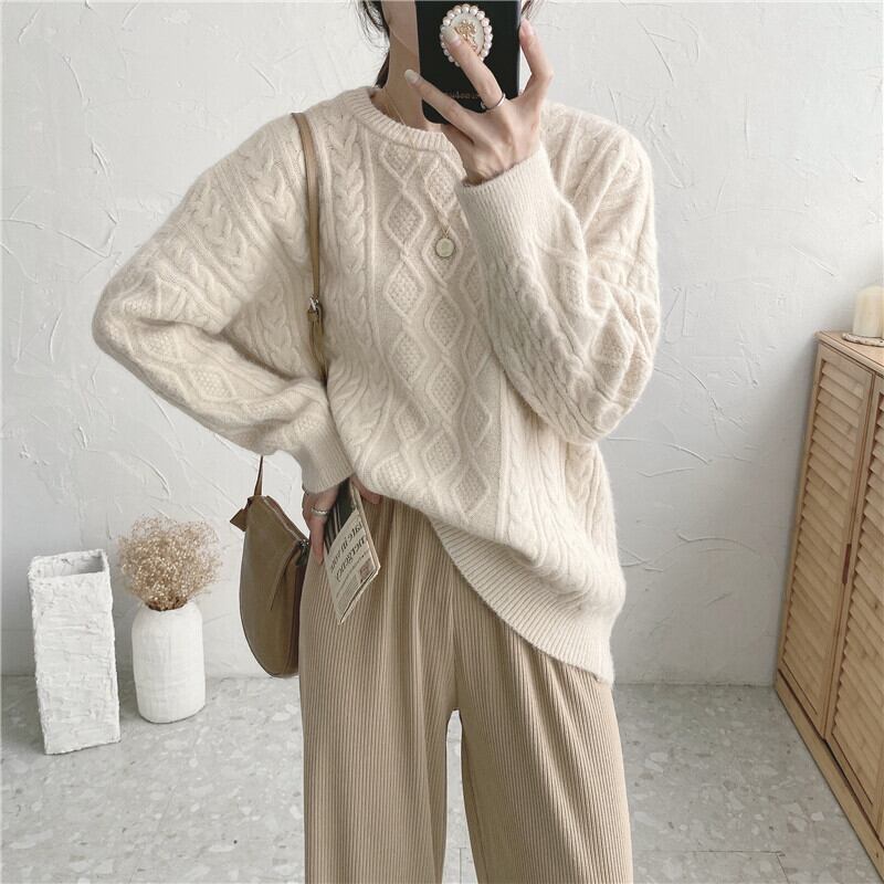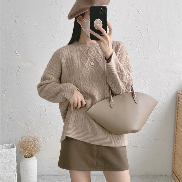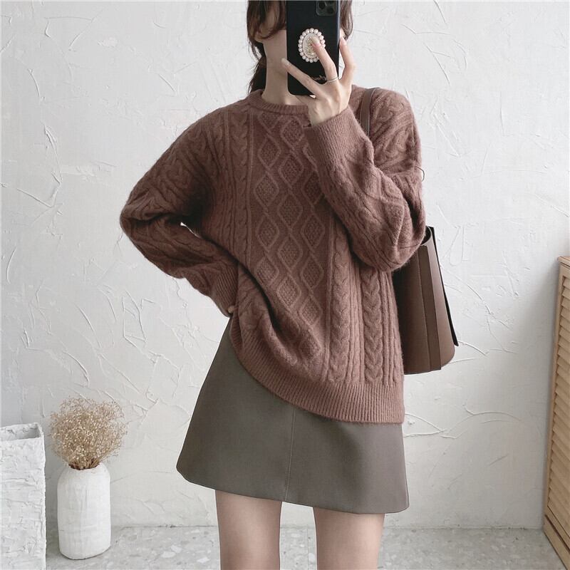 セーター ルーズオータムウィンタースタンダードニット レトロ 秋物 冬物 1号婦人84292838244