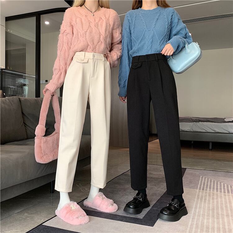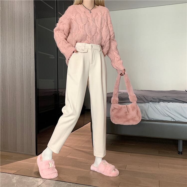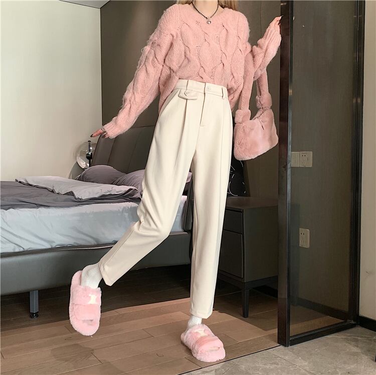 カジュアルパンツ オータムウィンターハイウェストウェストルーズ 秋物 冬物 1号婦人21898202438
