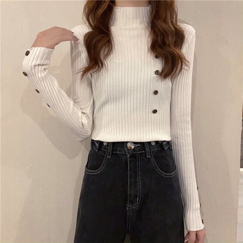 ブラックカラーシャツ オータムウィンタースリムトップス ニットセーター ロング 秋物 冬物 1号婦人85280874867
