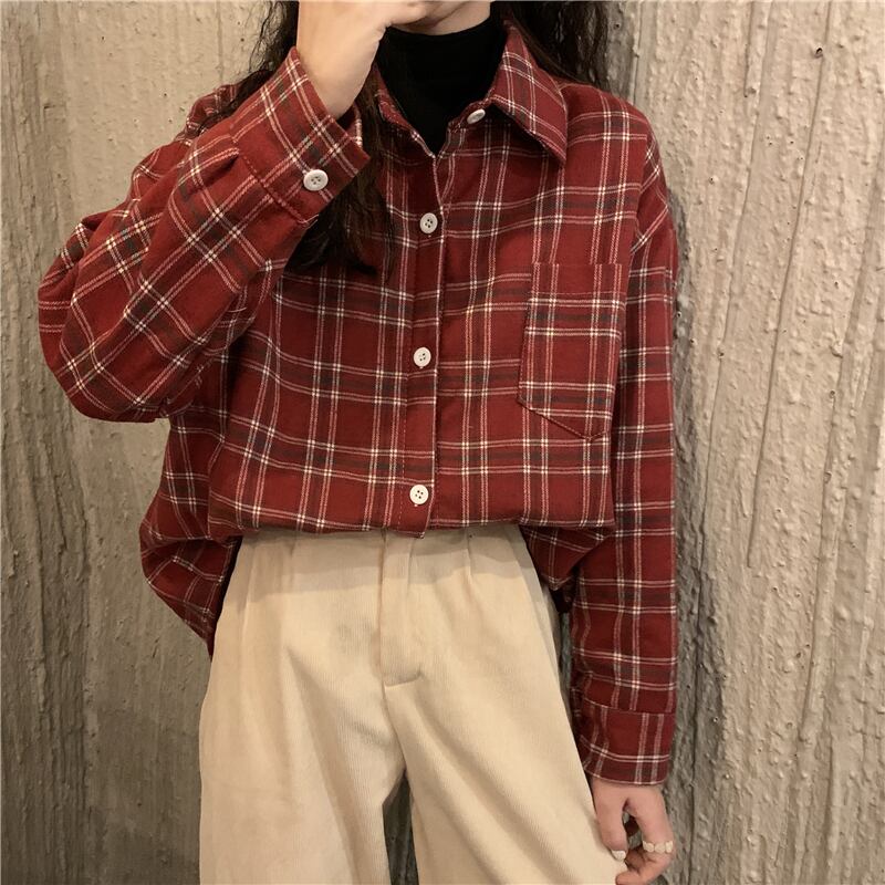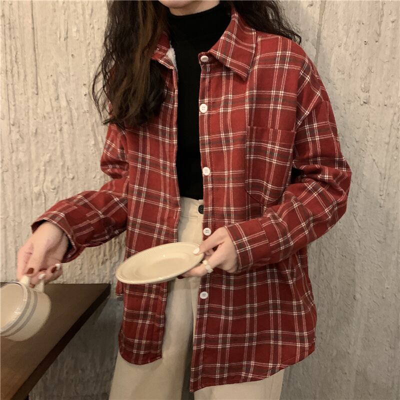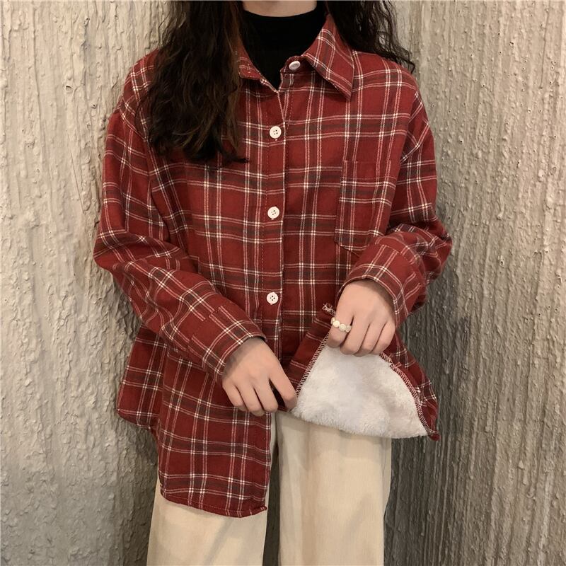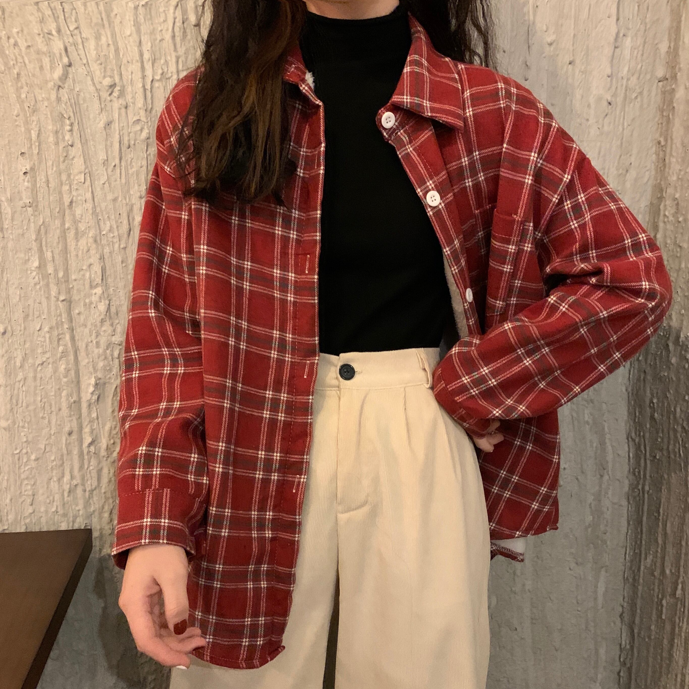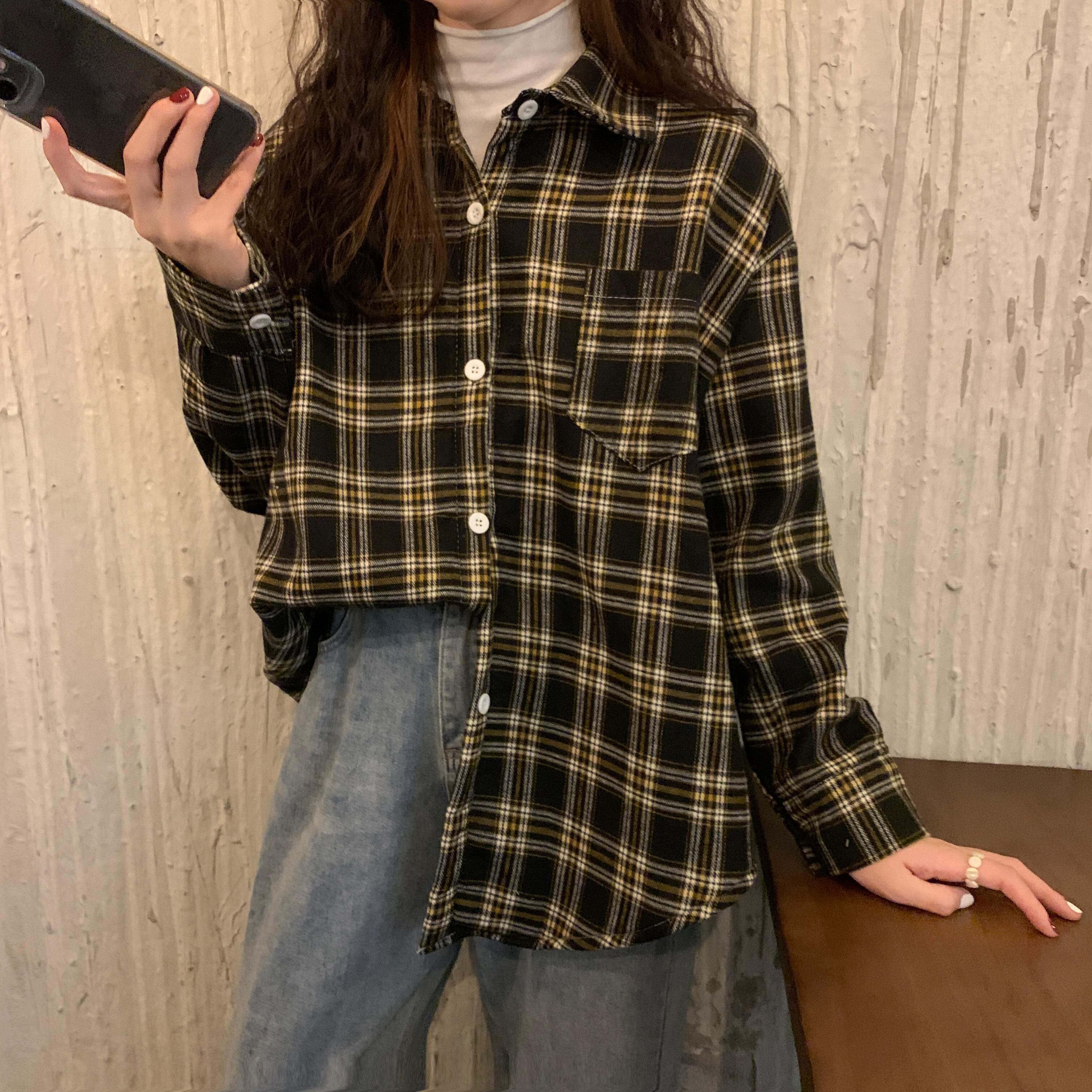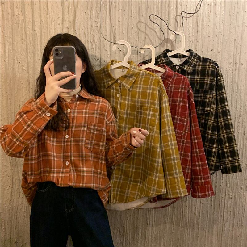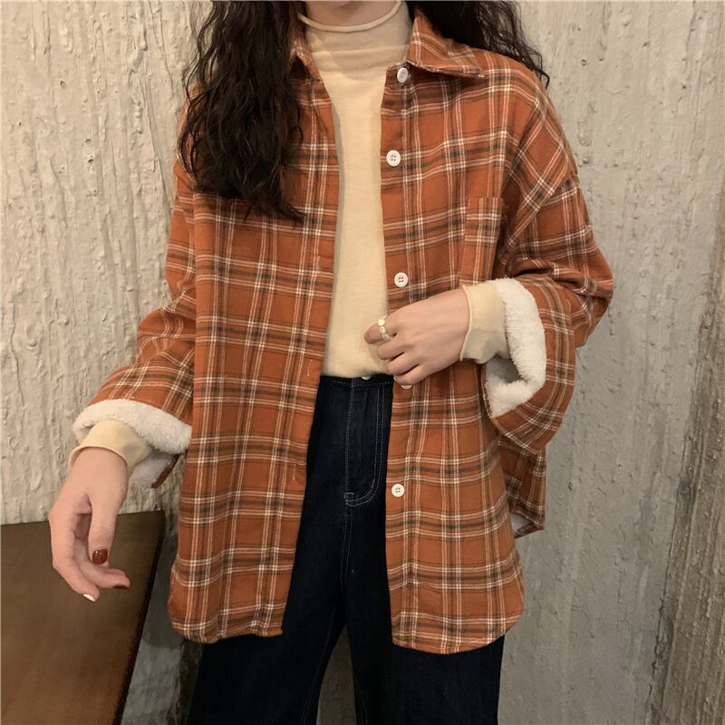 スタンダード格子柄シャツ オータムウィンタートップス ベルベットジャケット ロング レトロ 秋物 冬物 1号婦人40960253464