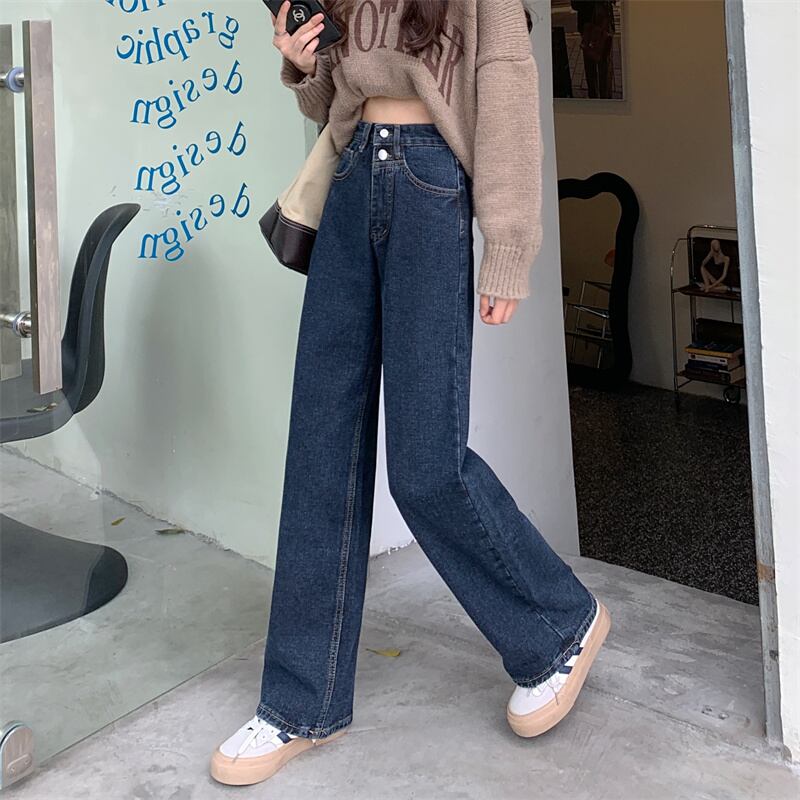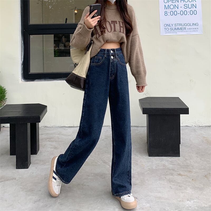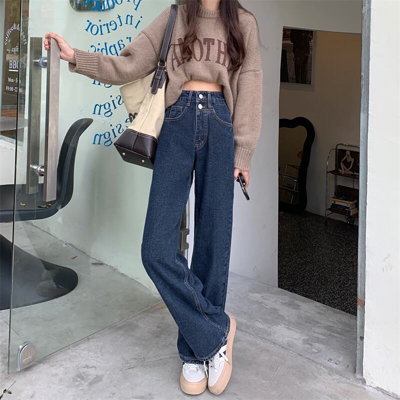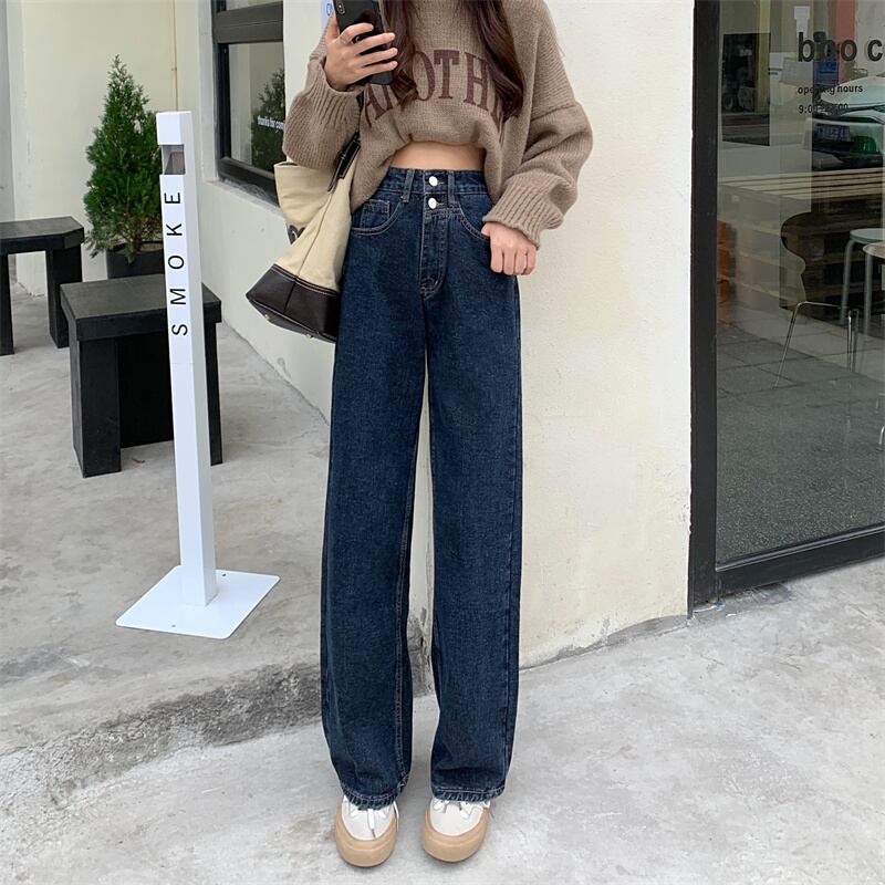 ジーンズ ハイウェストパンツ スタンダードルーズ レトロ ウィンター 冬物 1号婦人7820580986